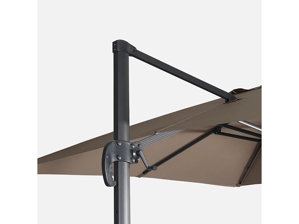 Parasol déporté rectangulaire 3x4m - Wimereux - Taupe- Parasol excentré inclinable dans 5 positions. rotatif à 360°.