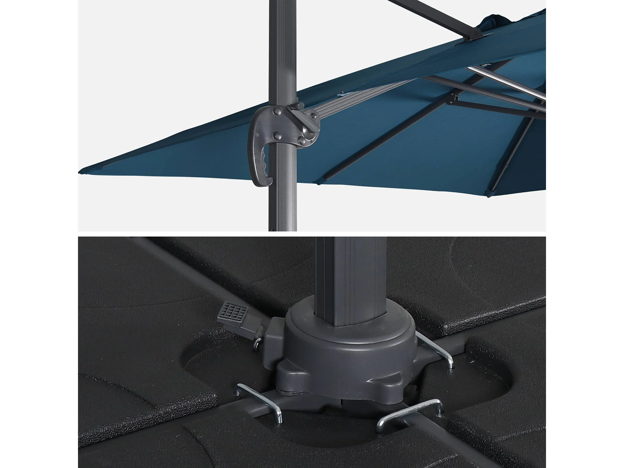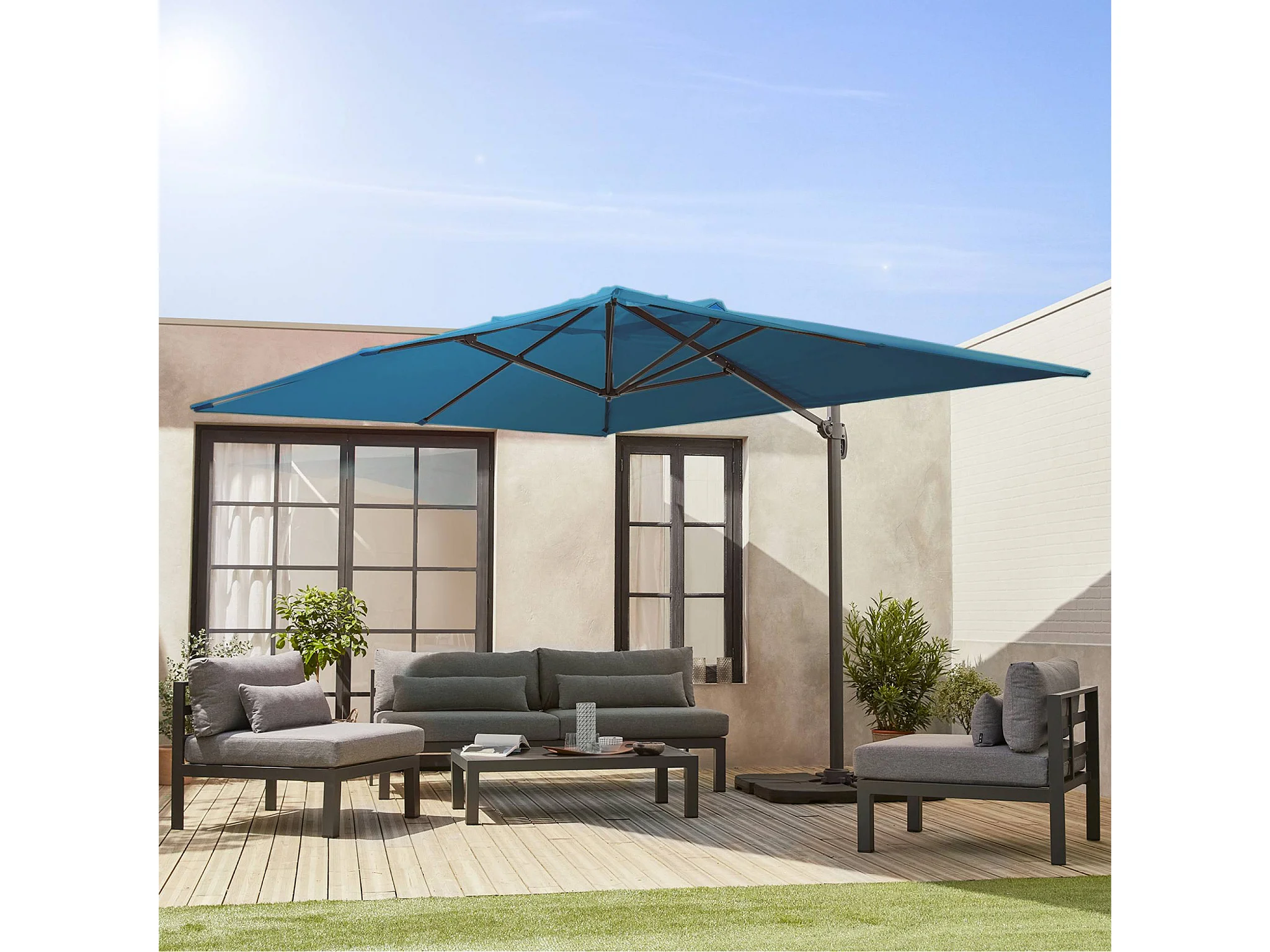 Parasol déporté rectangulaire bleu canard 3x4m + dalles à lester 50x50cm