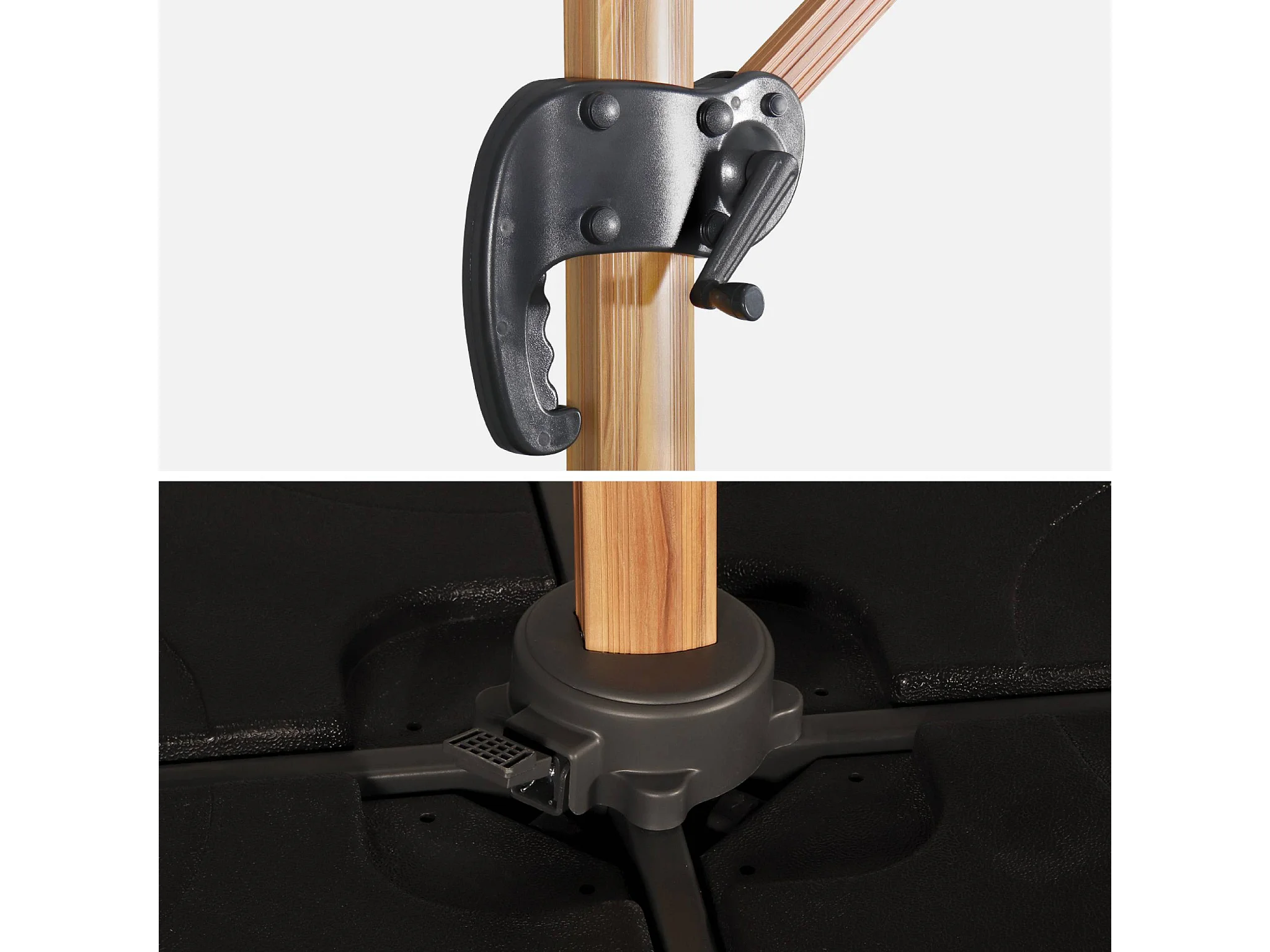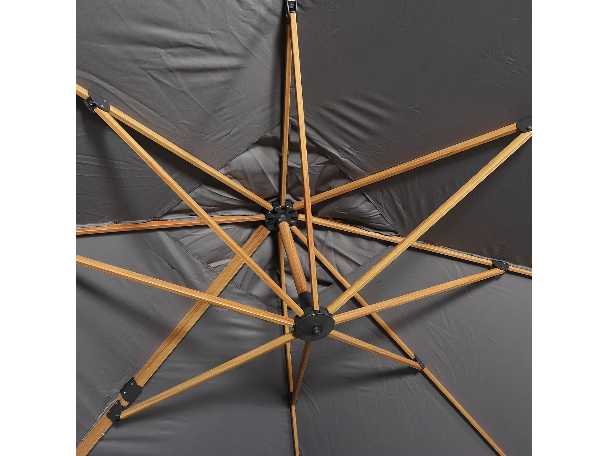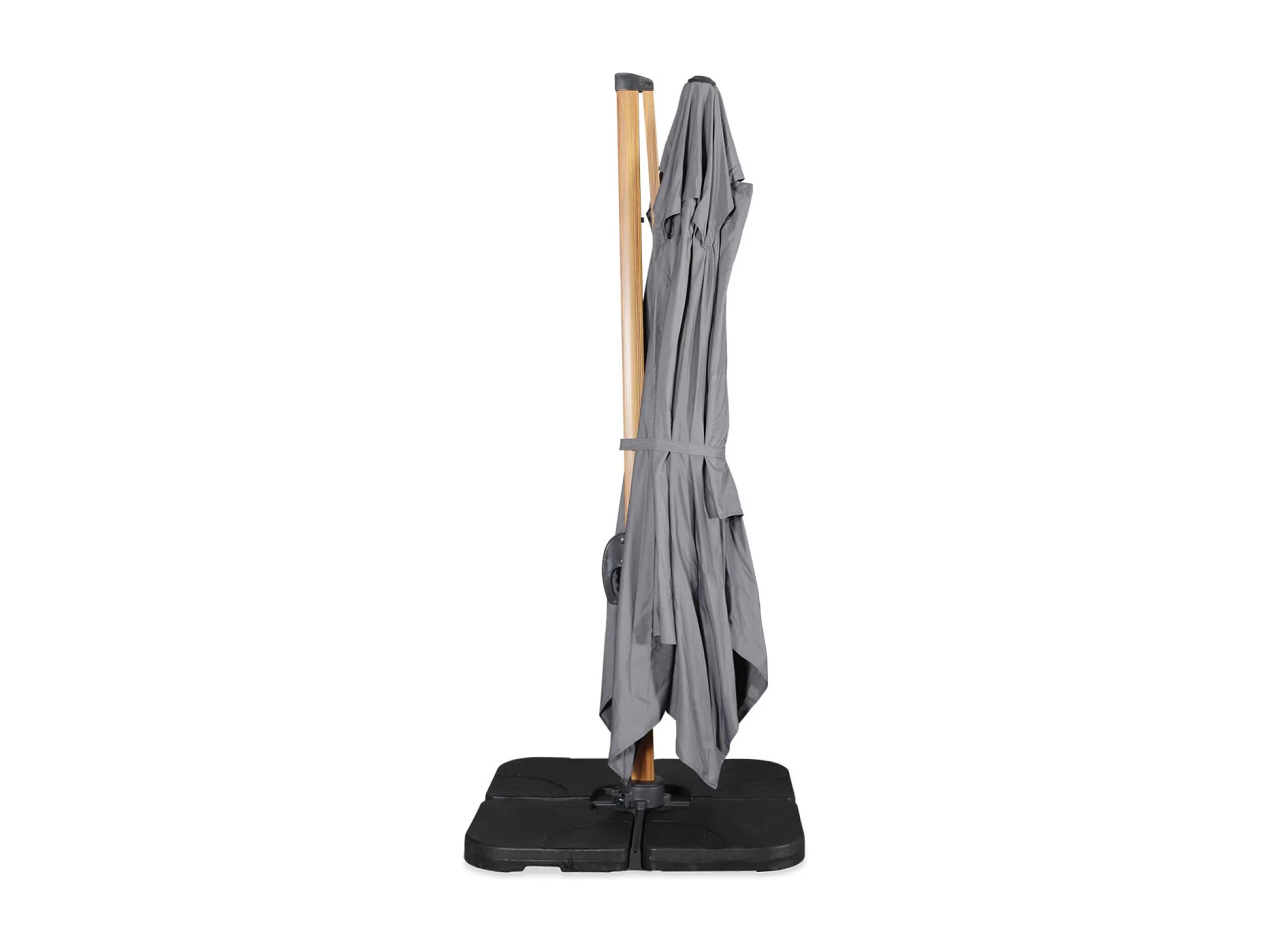 Parasol déporté rectangulaire gris 3x4m. mât effet bois + Dalles à lester 50x50cm