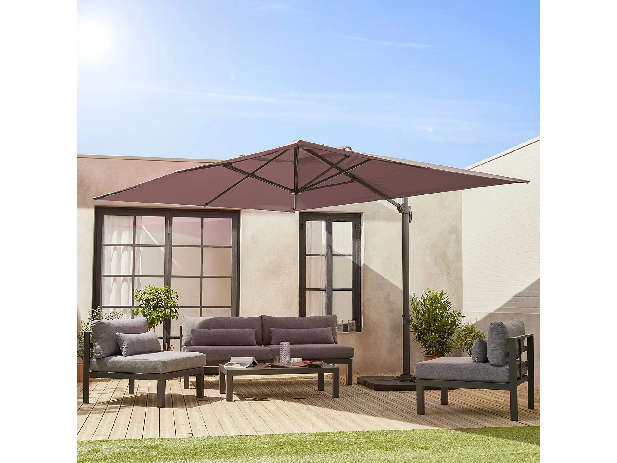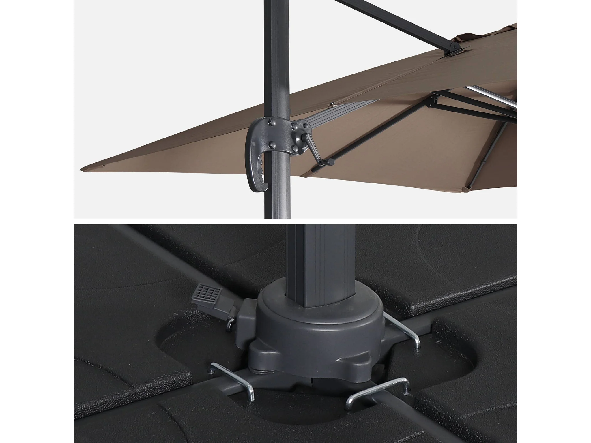 Parasol déporté rectangulaire taupe 3x4m + dalles à lester 50x50cm