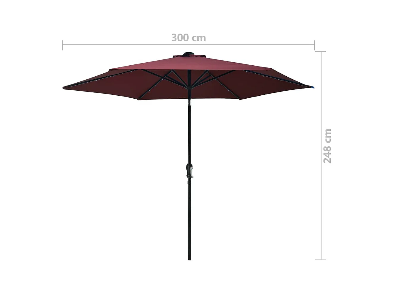 Parasol d'extérieur avec LED et mât en acier 300cm Bordeaux
