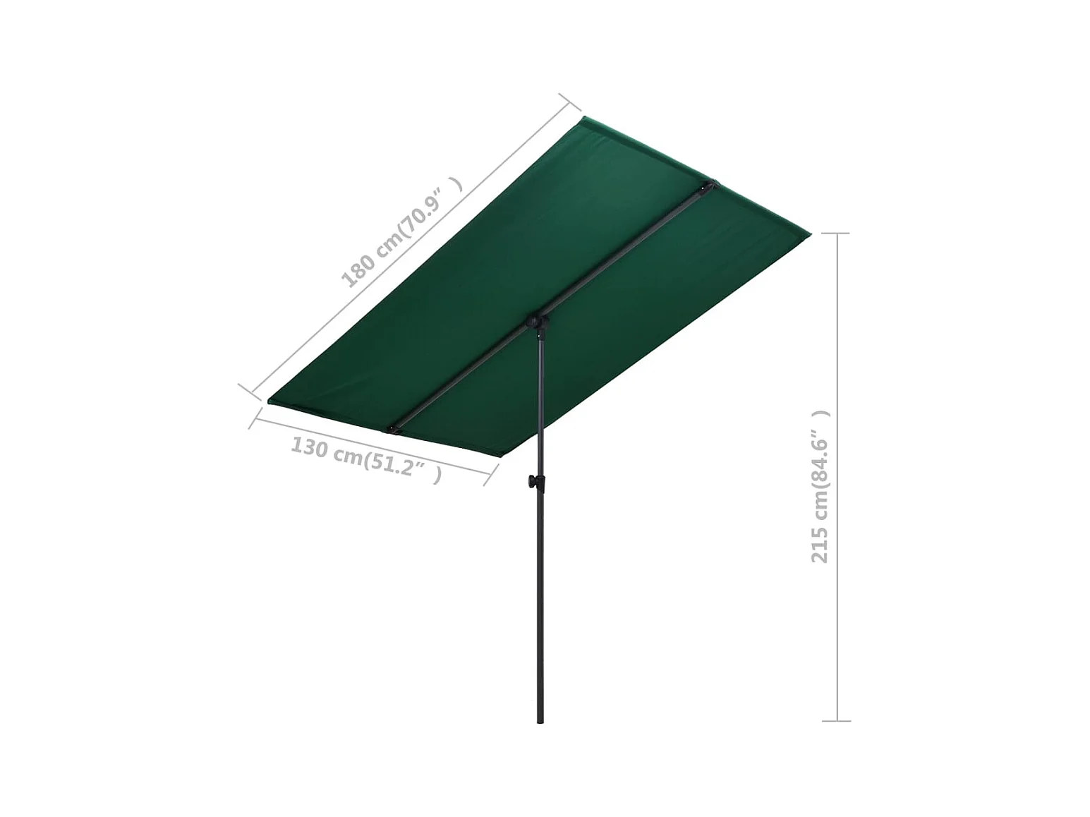 Parasol d'extérieur avec mât en aluminium 180x130 Vert