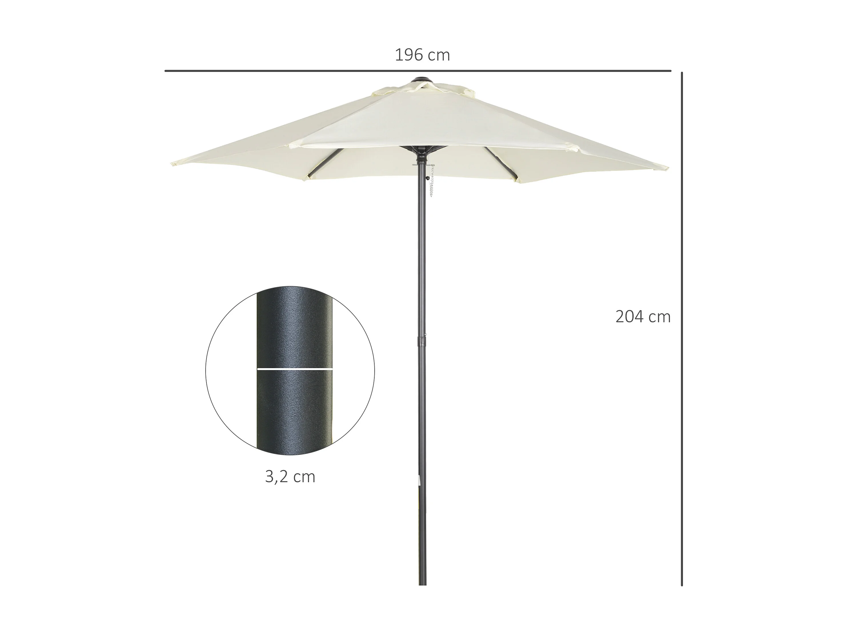 Parasol droit de jardin balcon terrasse grande taille toile polyester 160 g/m² Ø 1,96 x 2H m mât alu beige