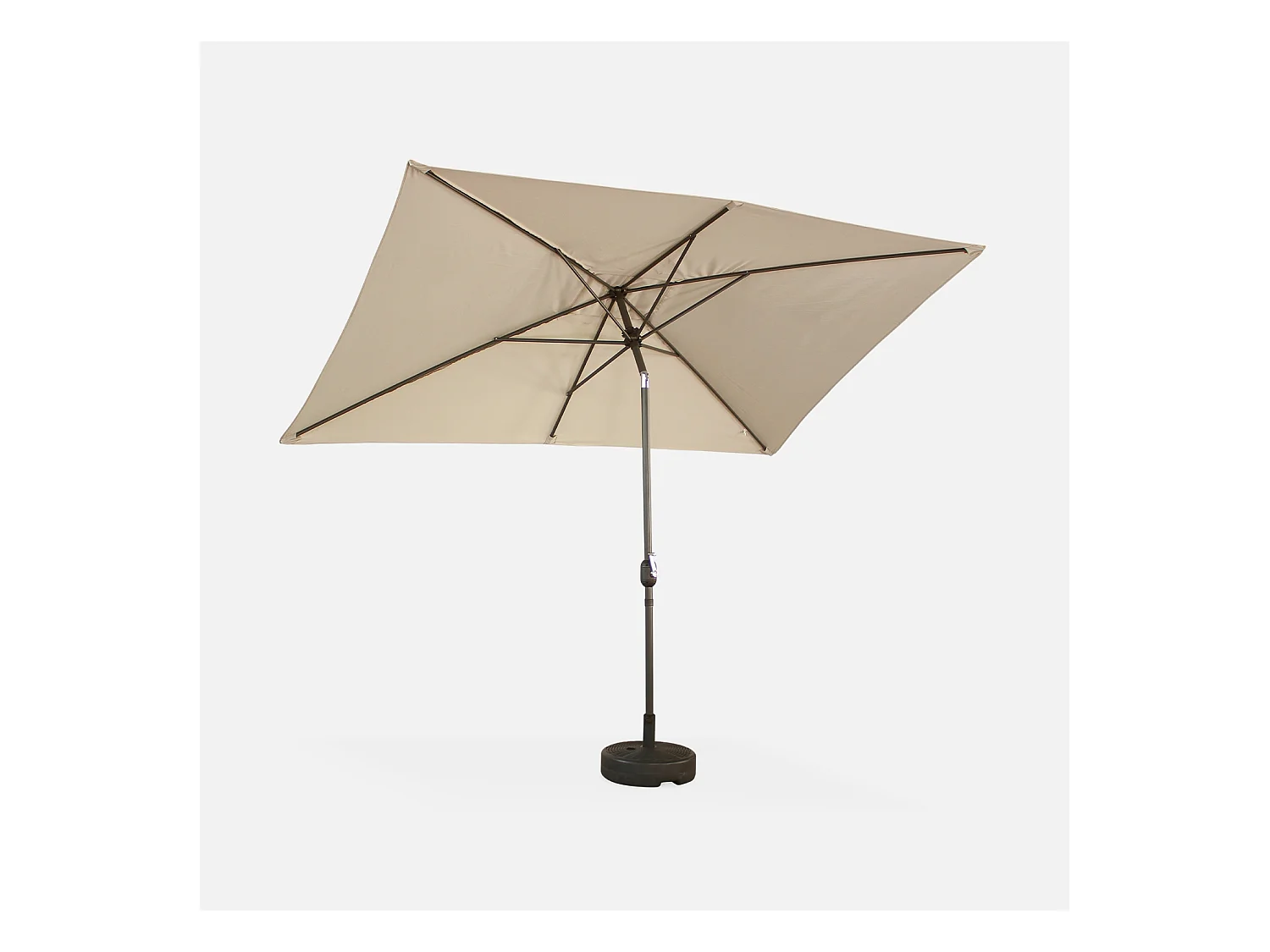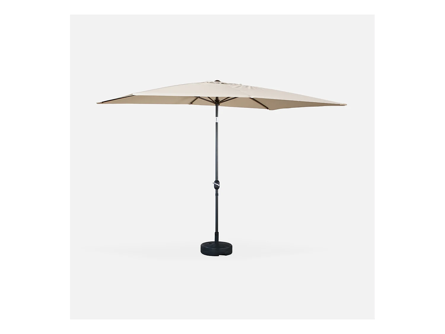 Parasol droit rectangulaire 2x3m - Touquet Sable - mât central en aluminium orientable et manivelle d'ouverture