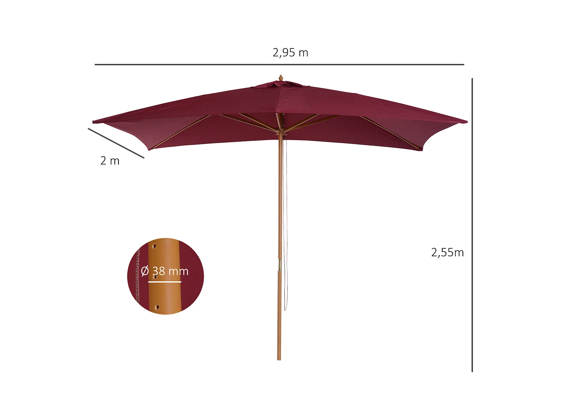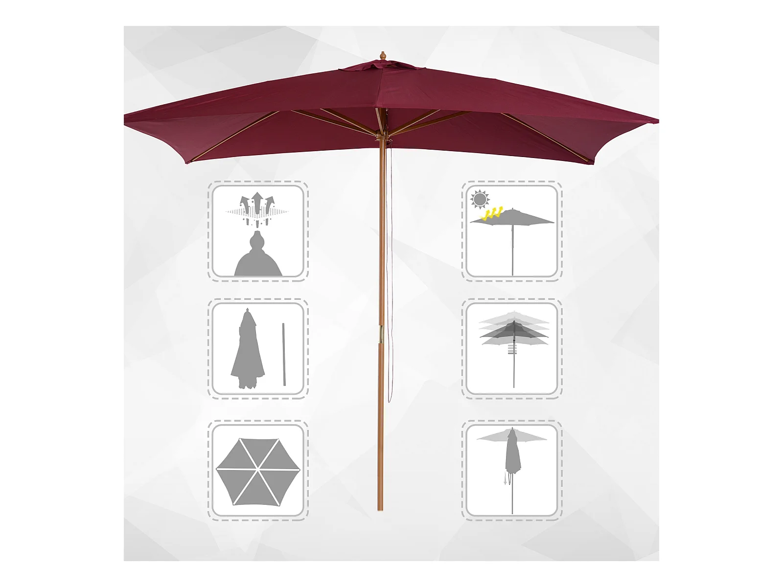 Parasol droit rectangulaire de jardin 2,95L x 2l x 2,55H m rouge bordeaux