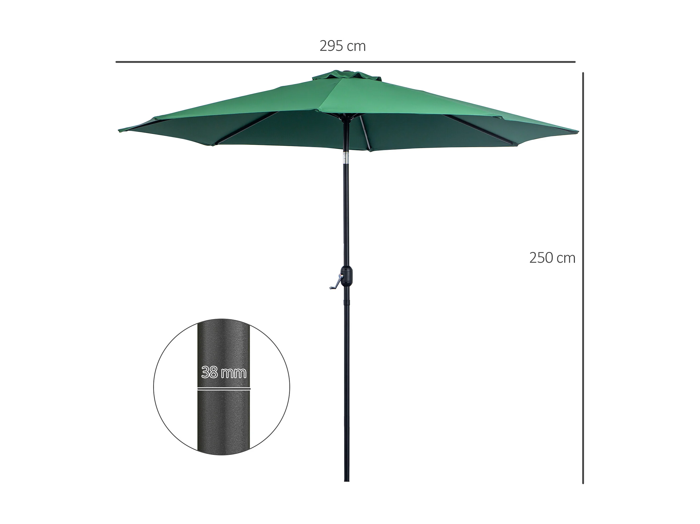 Parasol en métal rond polyester 180g/m² manivelle inclinable Ø 3 x 2,45 m vert