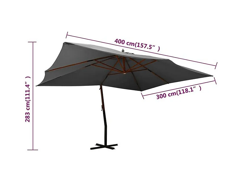 Parasol en porte-à-faux avec mât en bois 400x300 Anthracite