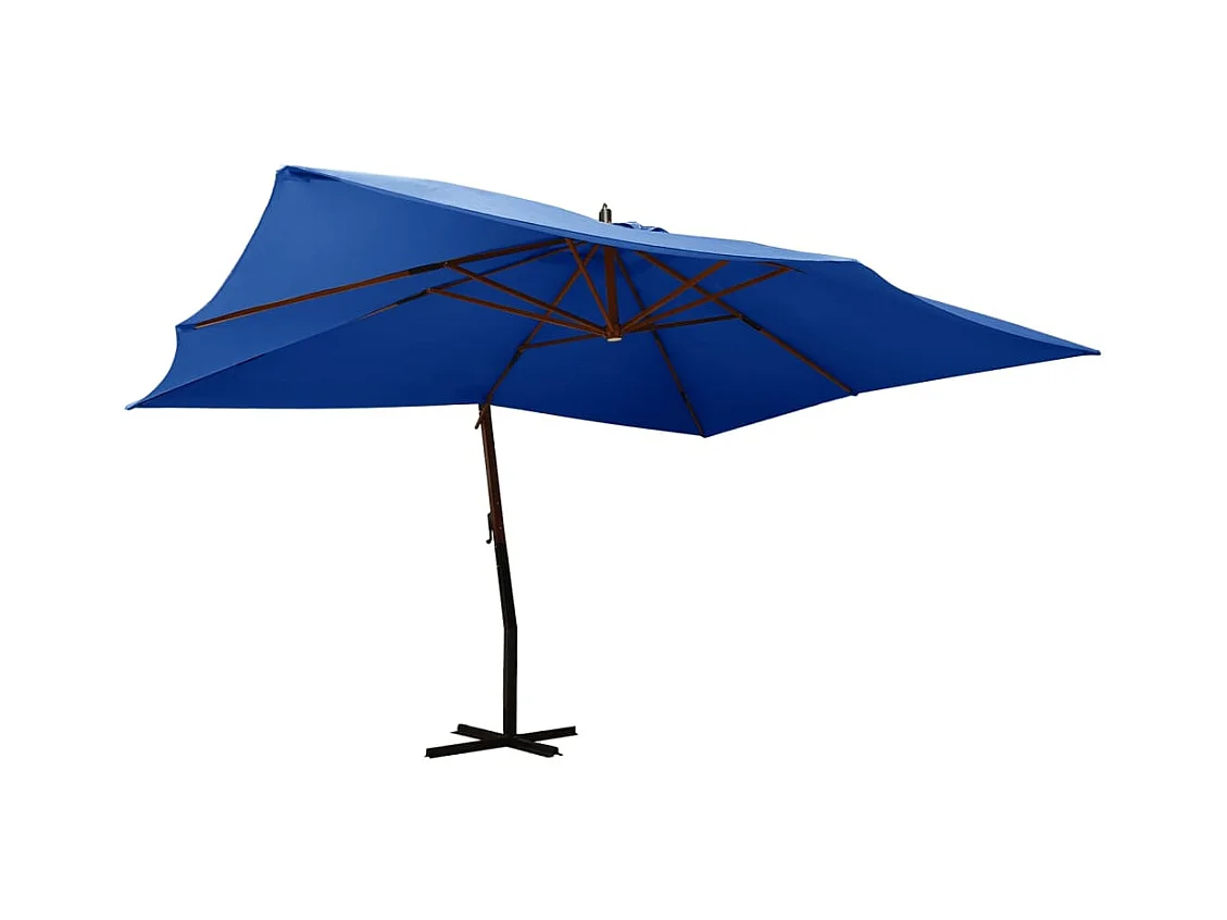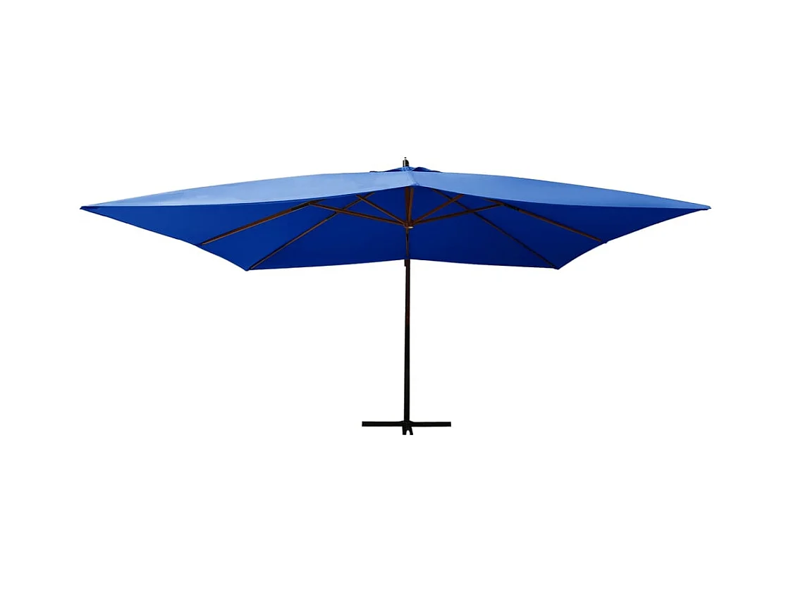 Parasol en porte-à-faux avec mât en bois 400x300 Bleu azuré