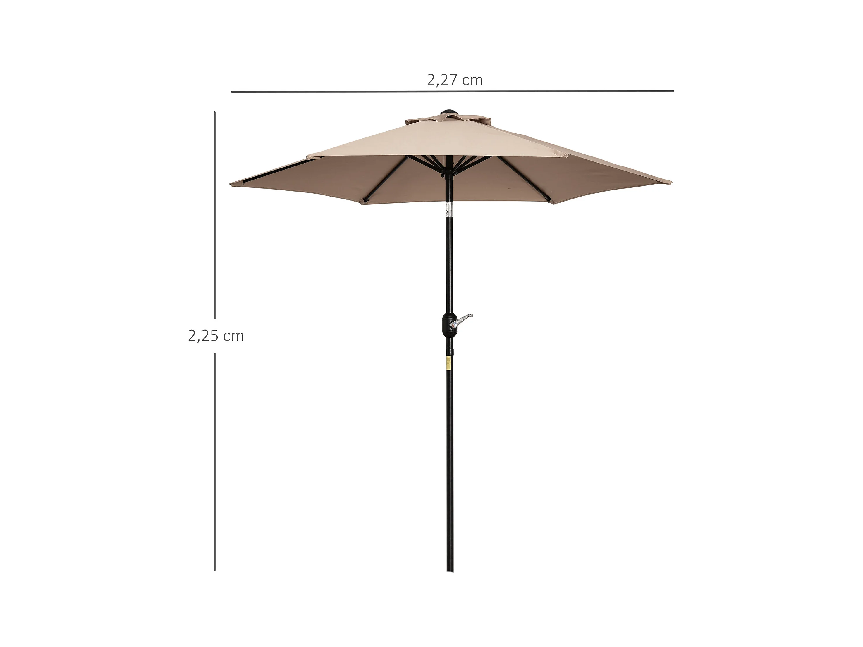 Parasol hexagonal inclinable dim. Ø 2,3 x 2,16H m métal polyester haute densité beige