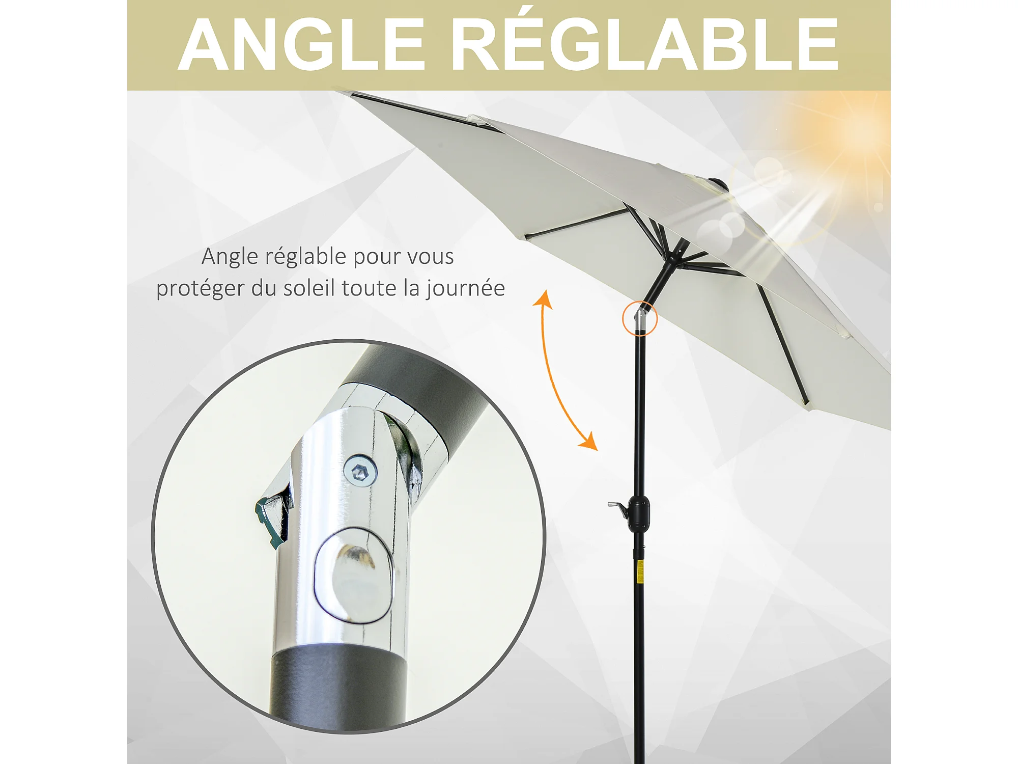 Parasol inclinable de jardin balcon terrasse manivelle toile polyester imperméabilisée haute densité 180 g/m² Ø2,7 x 2,35H m alu crème