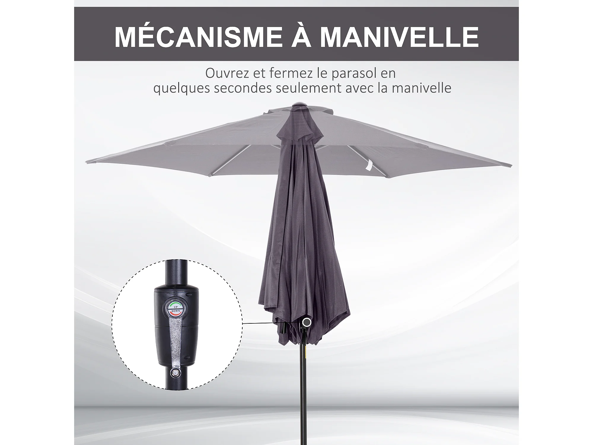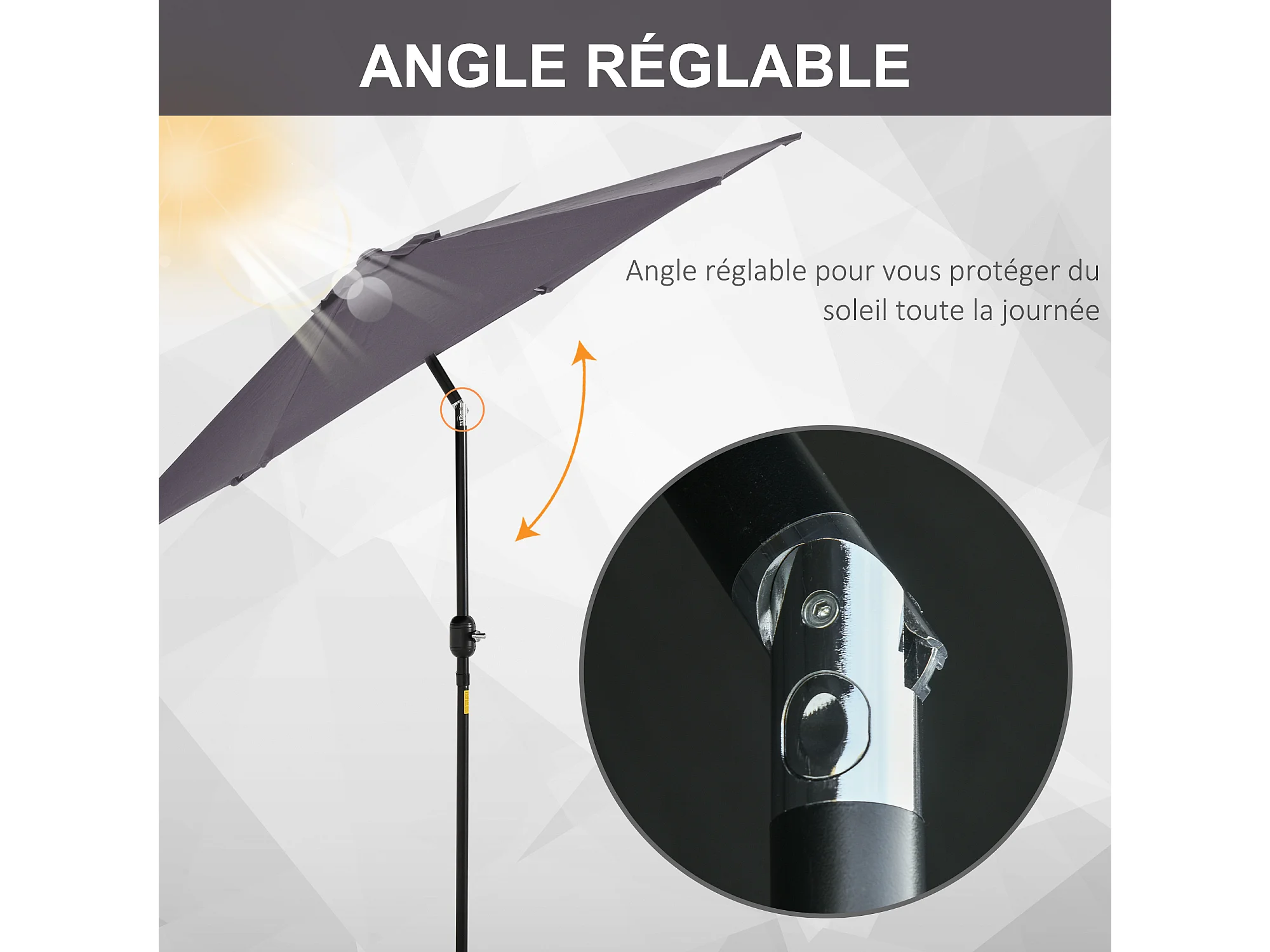 Parasol inclinable de jardin balcon terrasse manivelle toile polyester imperméabilisée haute densité 180 g/m² Ø2,7 x 2,35H m alu gris
