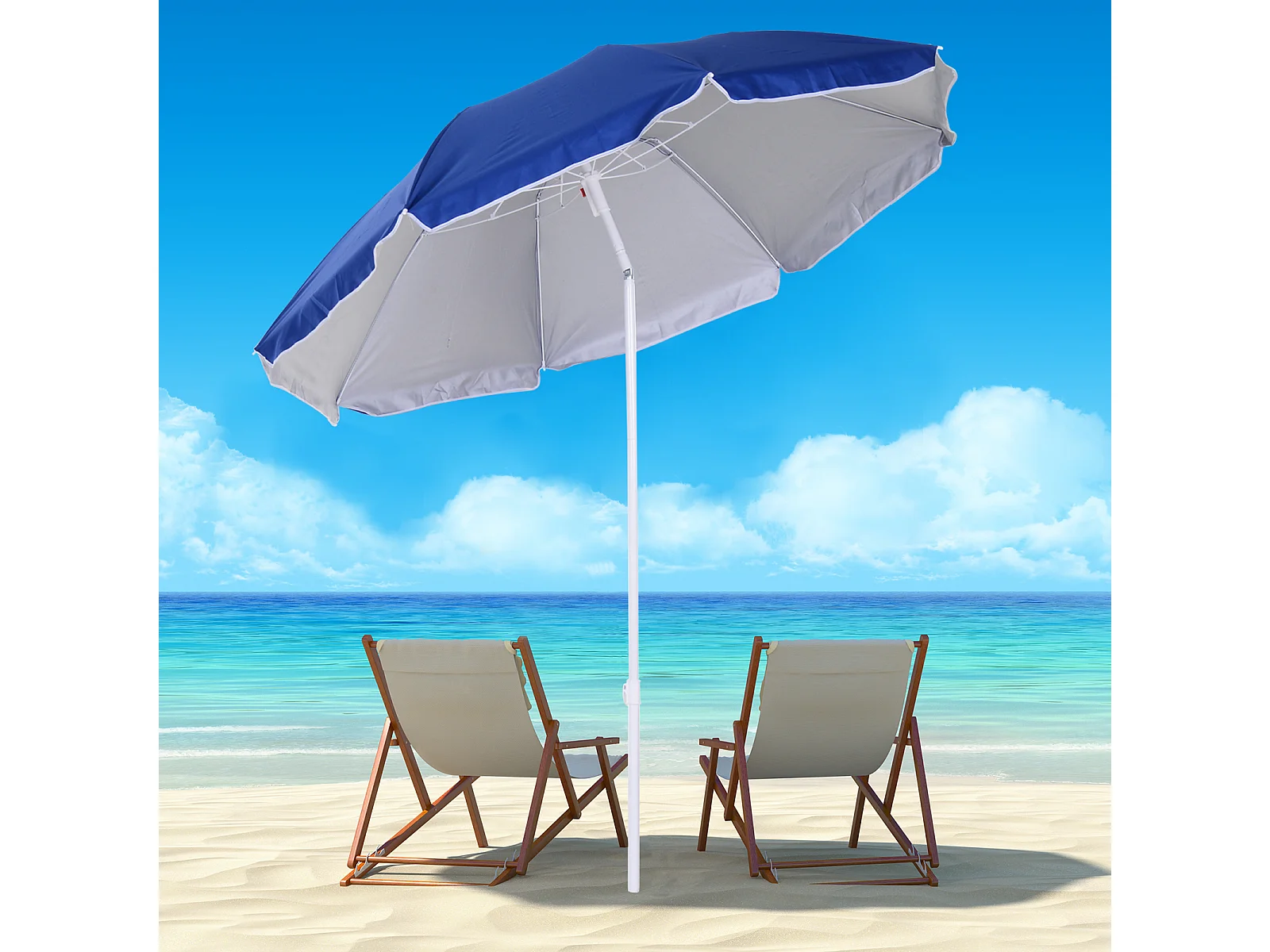 Parasol inclinable octogonal de plage Ø 150 cm tissu polyester haute densité anti-UV mât démontable sac de transport inclus bleu