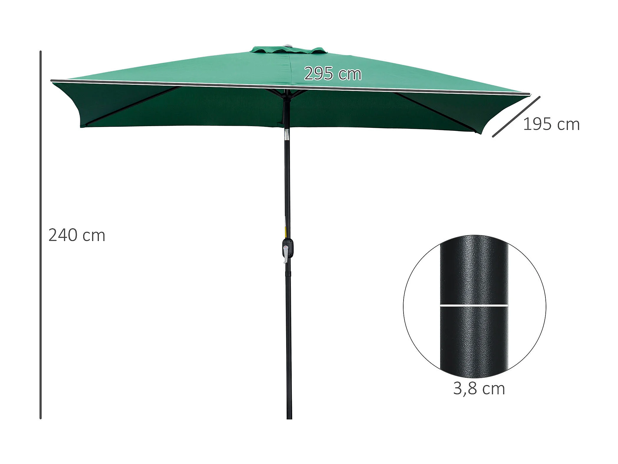 Parasol inclinable rectangulaire métal polyester haute densité 2,95L x 1,95l x 2,4H m vert