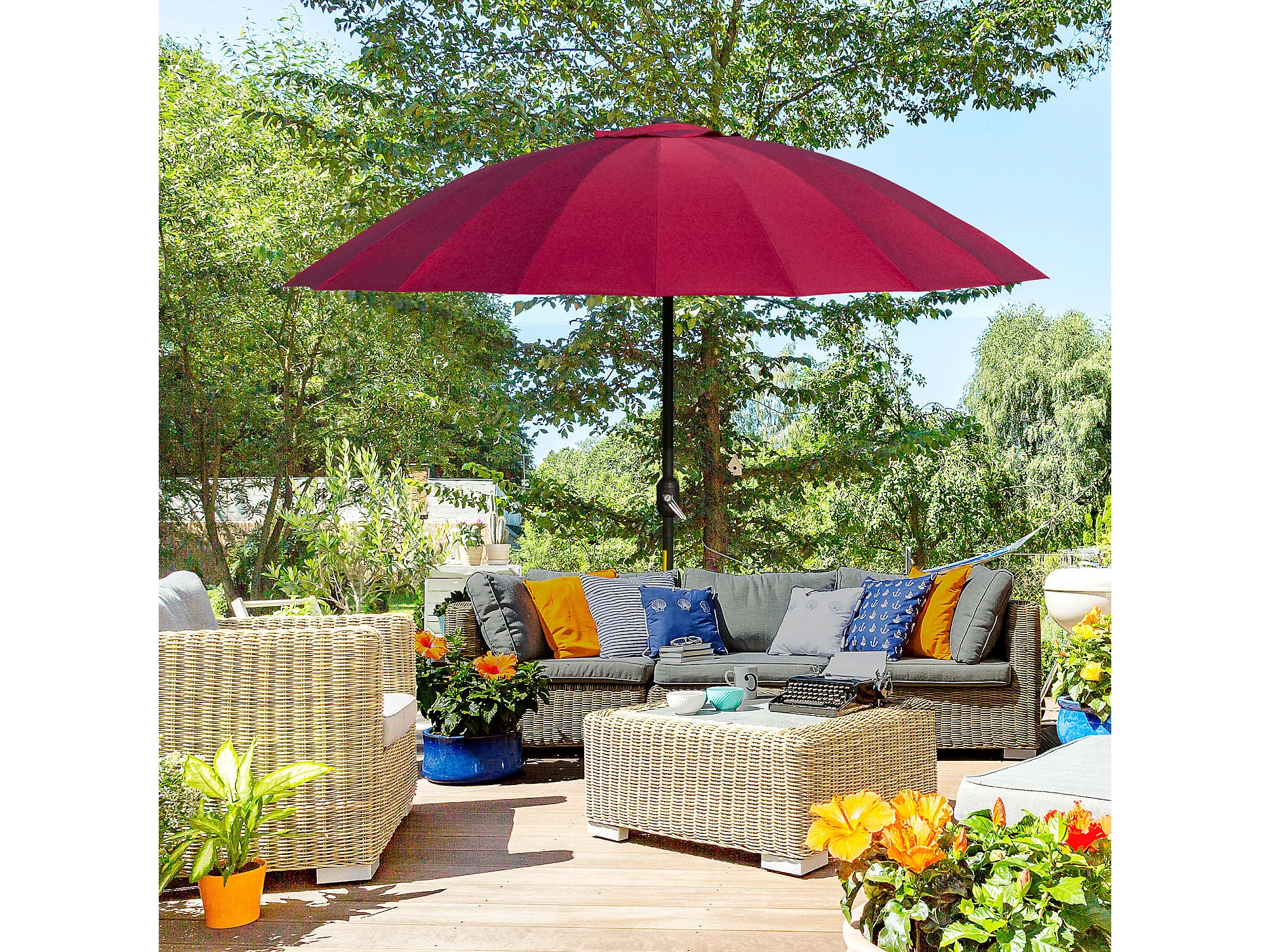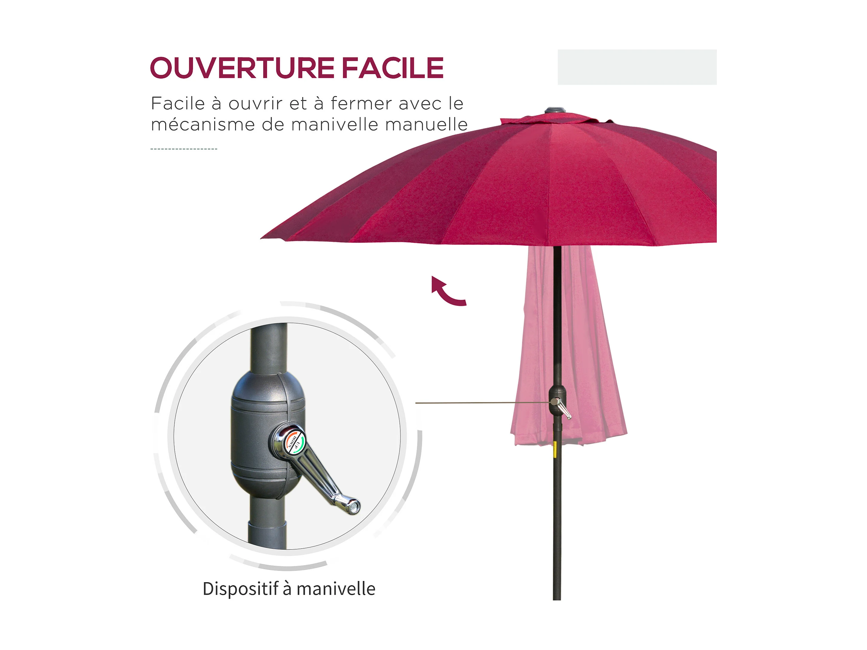 Parasol inclinable rond avec manivelle métal fibre de verre Ø 2,55 m polyester haute densité bordeaux