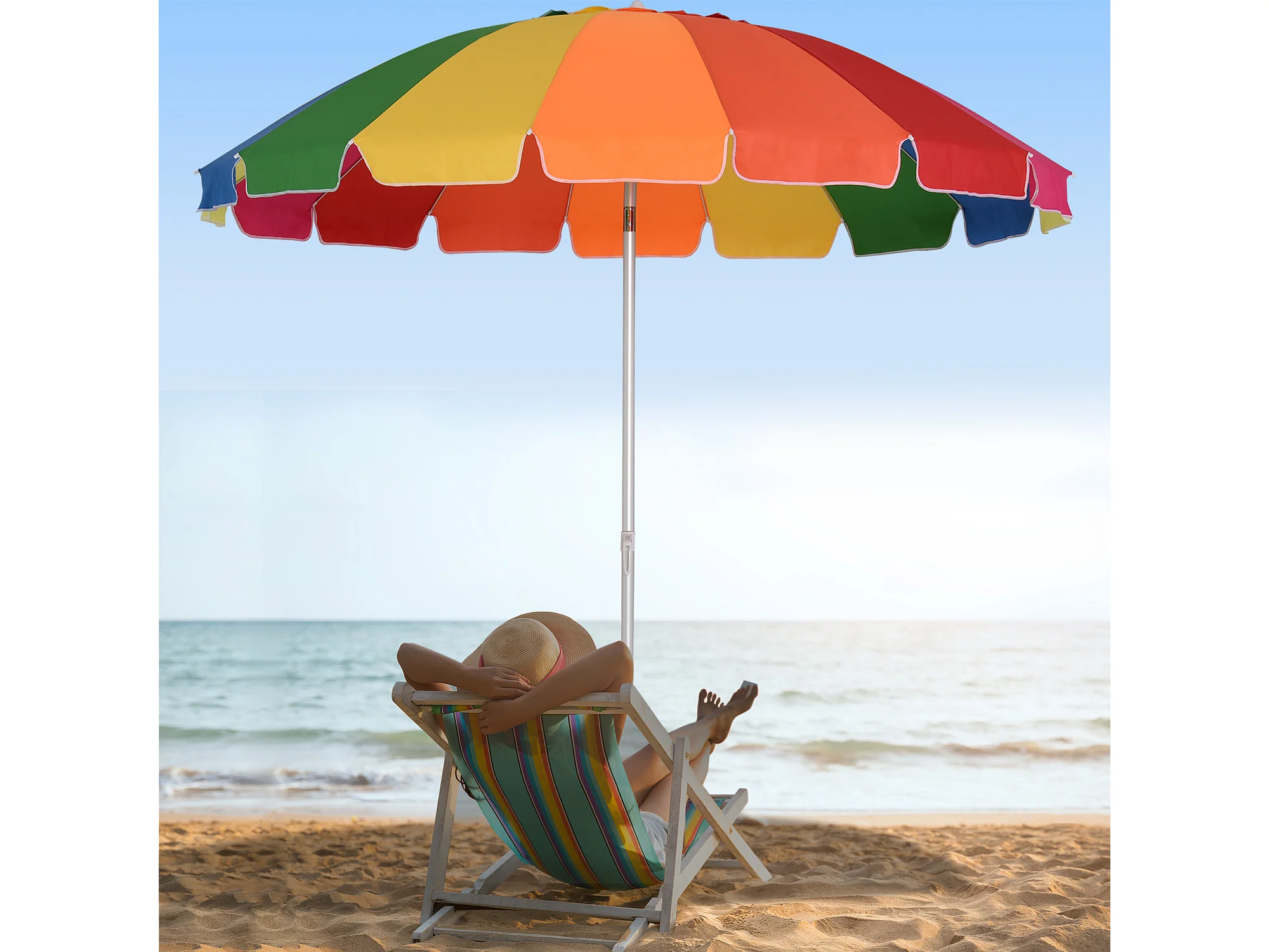 Parasol inclinable rond Ø 220 cm tissu polyester haute densité anti-UV mât démontable alu sac de transport inclu multicolore