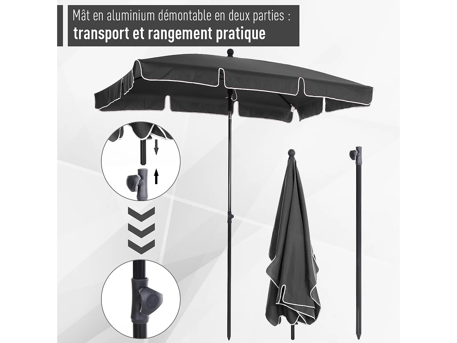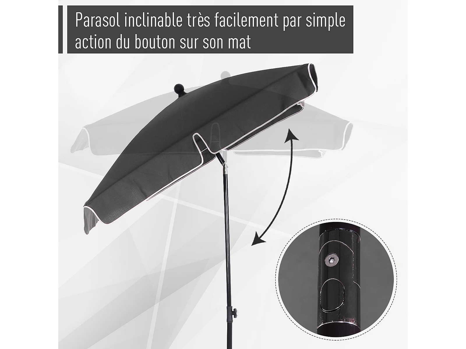 Parasol rectangulaire inclinable alu acier polyester haute densité diamètre 2 m gris