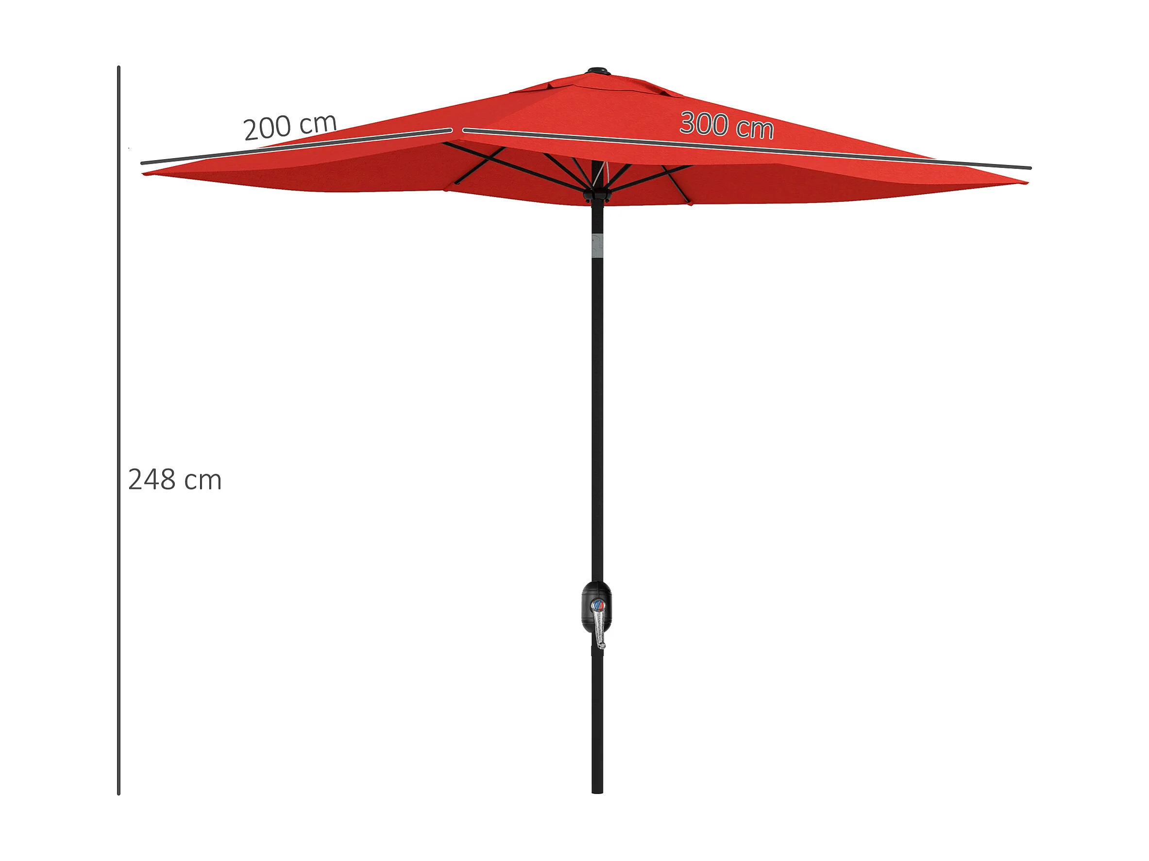 Parasol rectangulaire inclinable de jardin avec manivelle métal polyester haute densité anti UV 50+ rouge