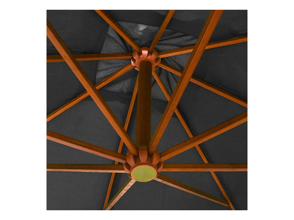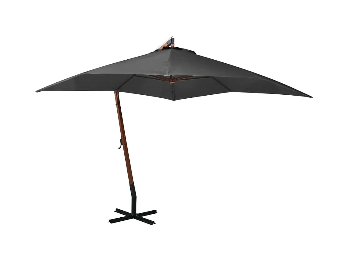 Parasol suspendu avec mât Anthracite 3x3 m Bois de sapin massif