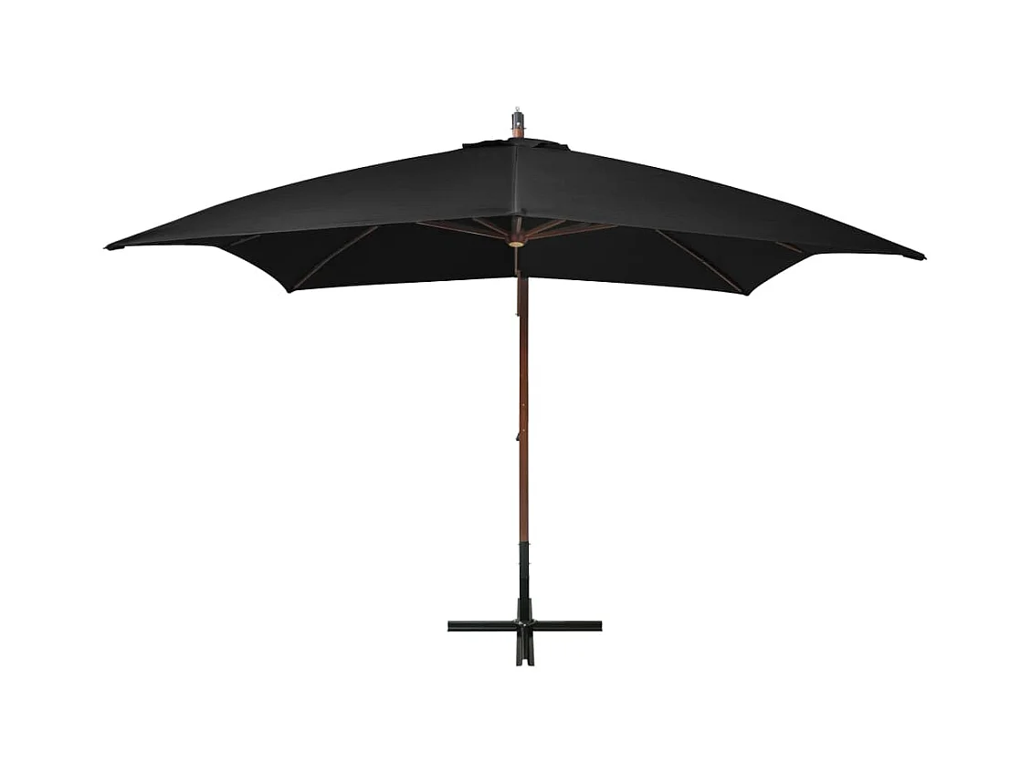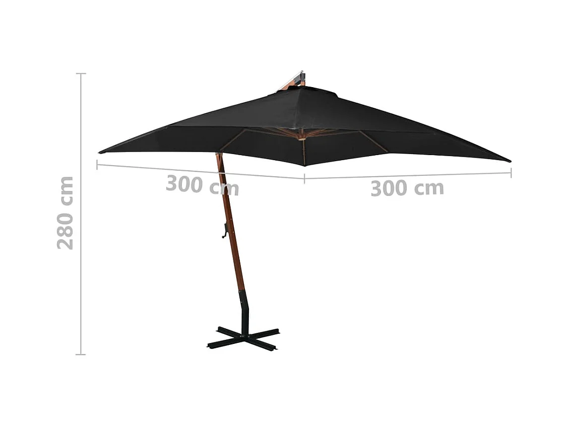 Parasol suspendu avec mât Noir 3x3 m Bois de sapin massif
