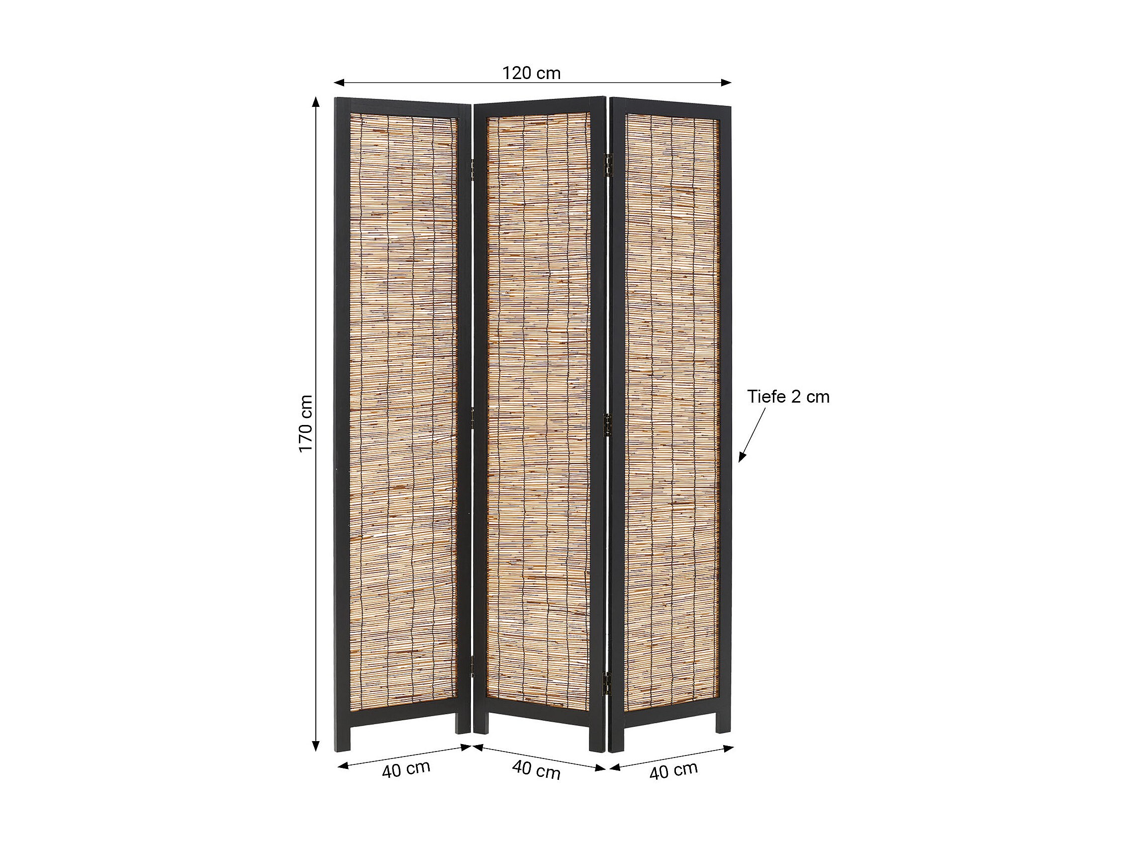 Paravent 170x120x2 cm Noir Saule