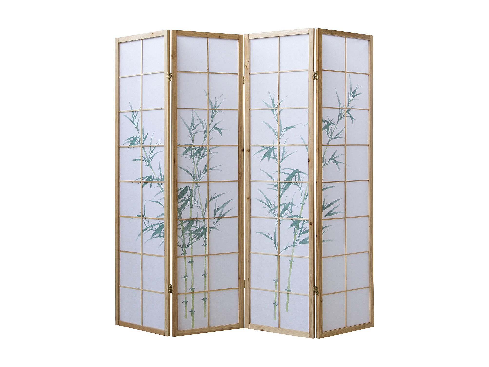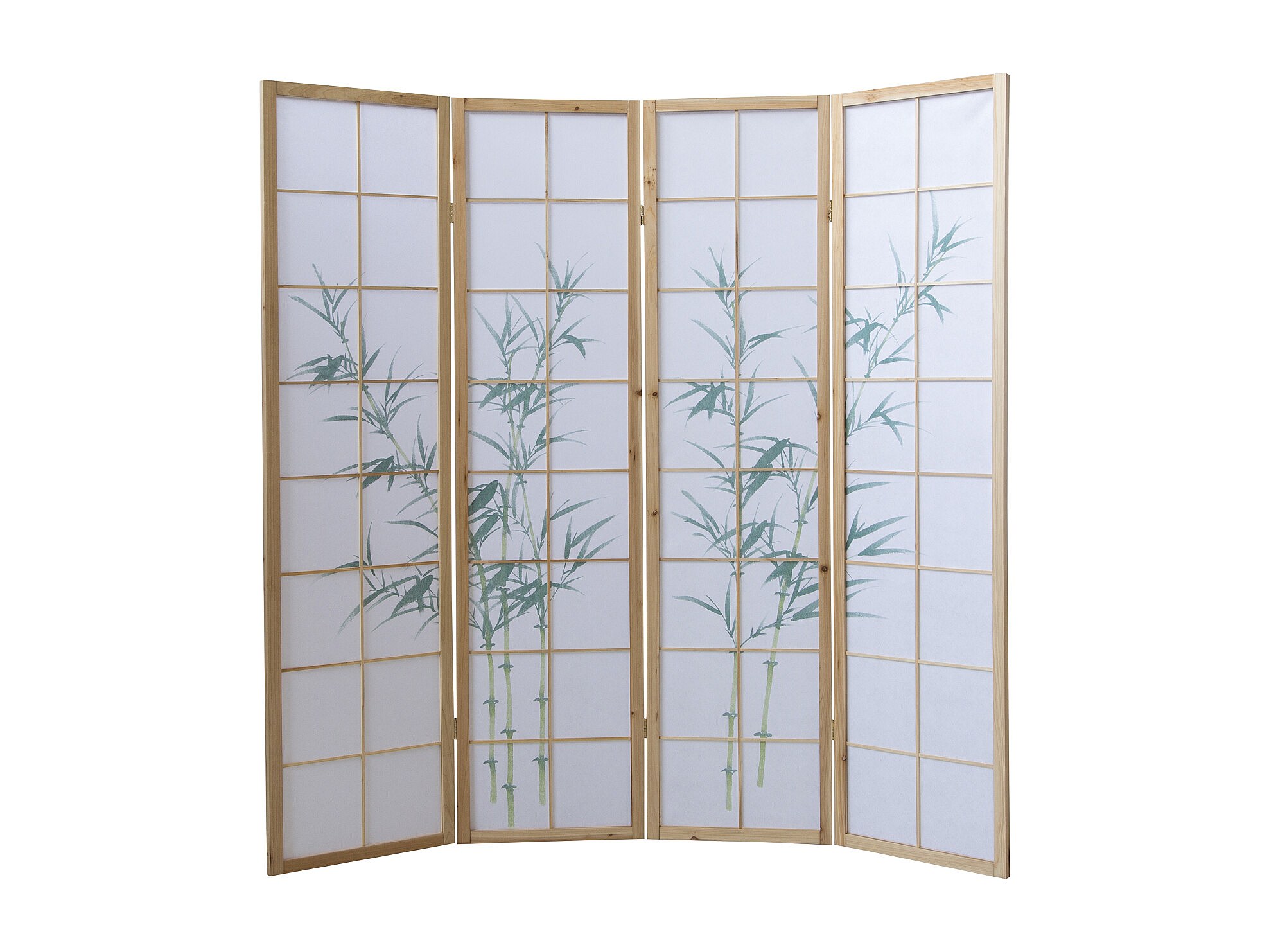 Paravent 176x2,2x175 cm bois blanc motif bambou