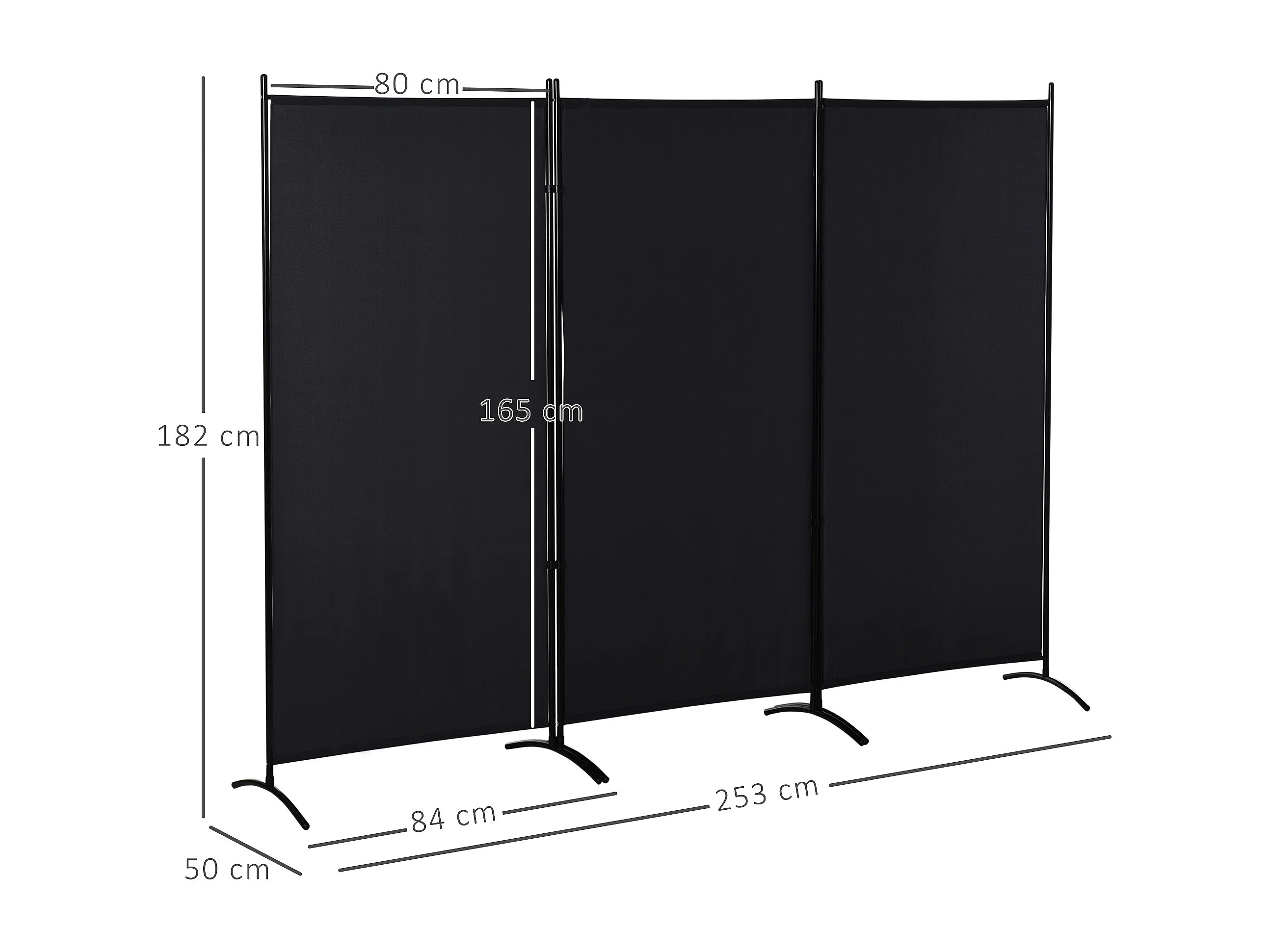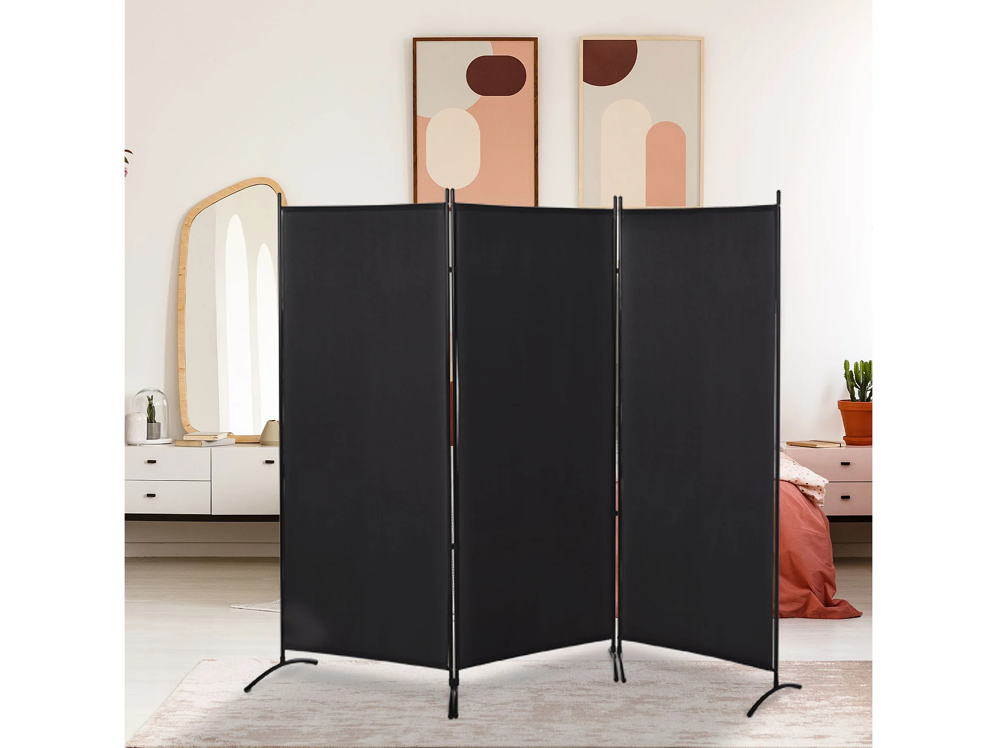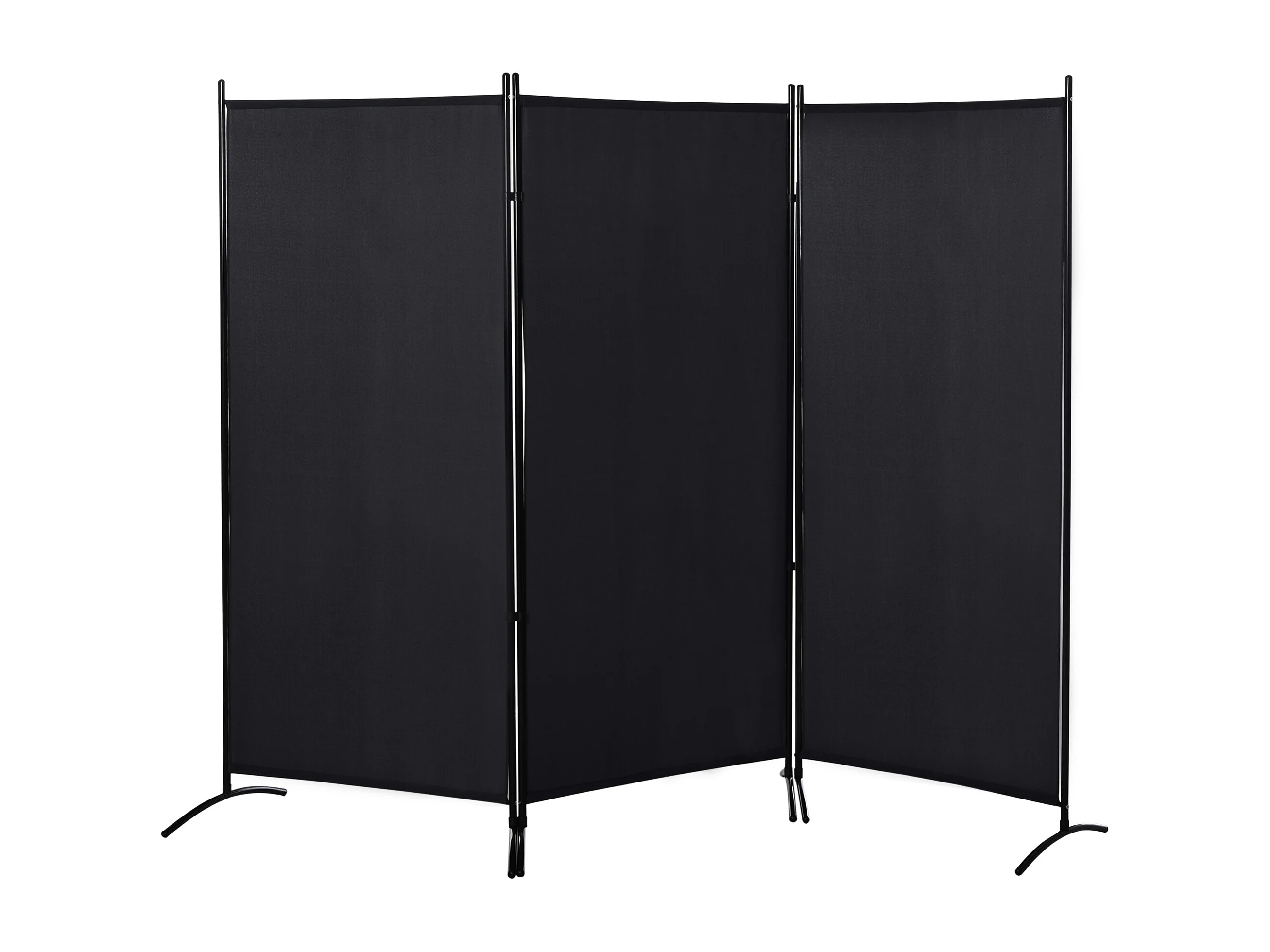 Paravent 3 panneaux sur pied brise-vue séparateur métal époxy polyester haute densité noir