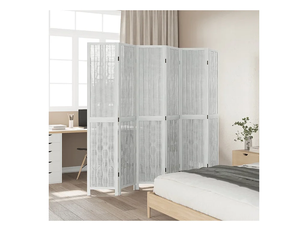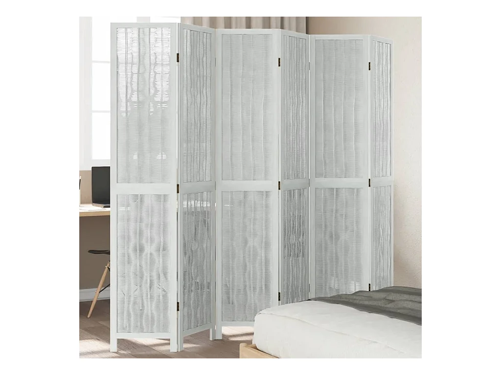 Paravent - Cloison de séparation 6 panneaux blanc bois de paulownia massif FR52944