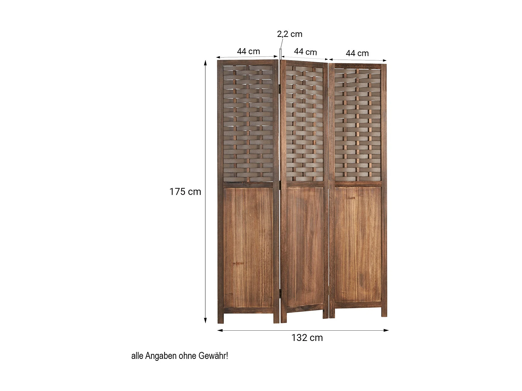 Paravent 3 panneaux marron bois marron 132 x 2.2 x 175 cm PAR06009