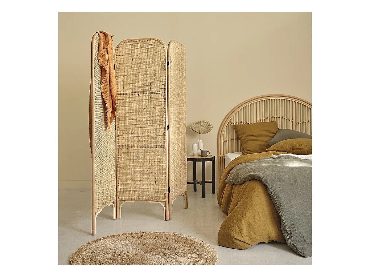 Paravent en rotin et cannage 170 cm