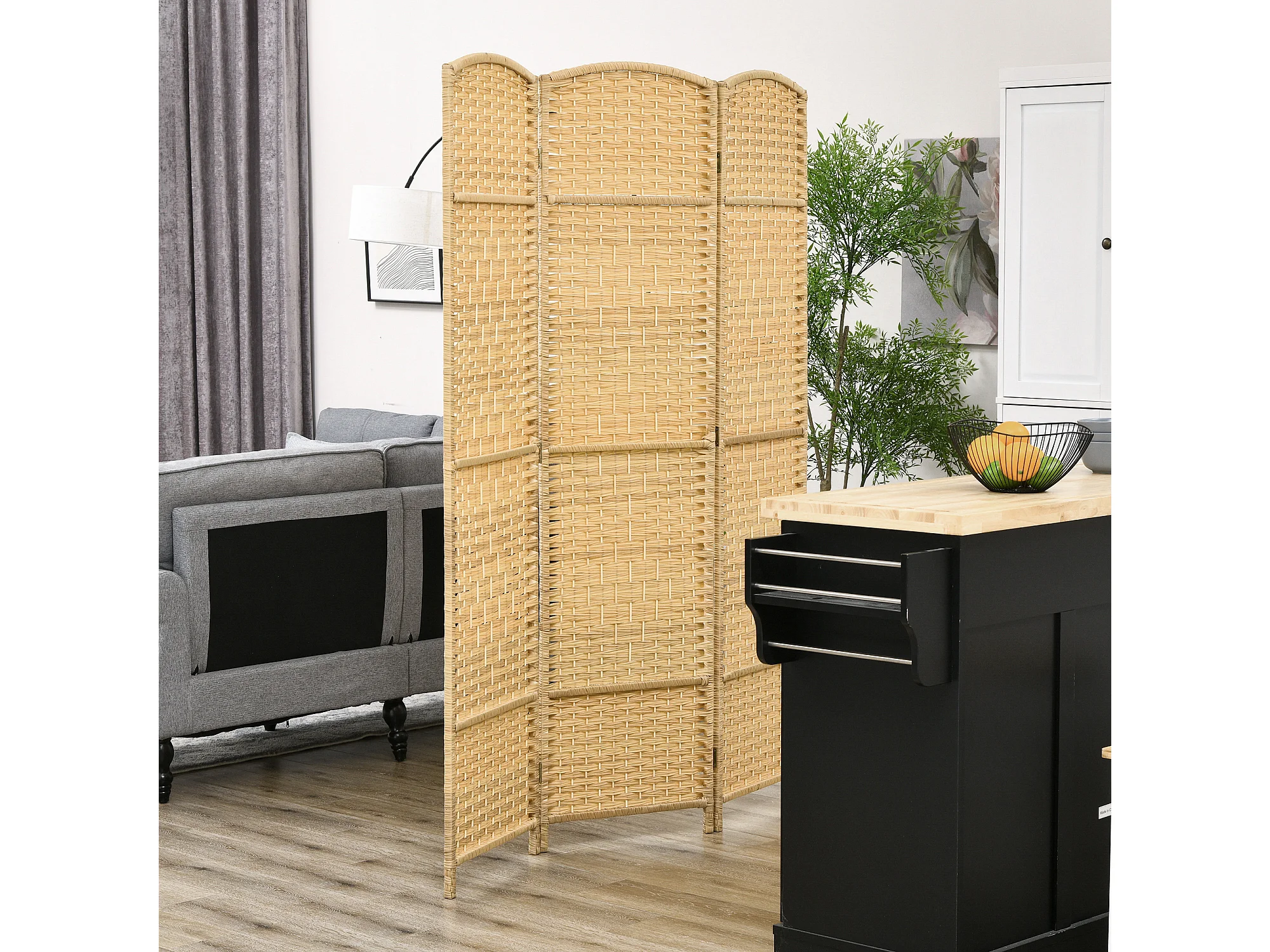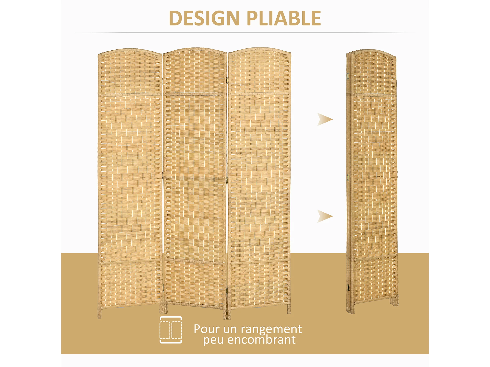 Paravent intérieur 3 panneaux pliables en bois séparateur de pièce style bohème tissé naturel