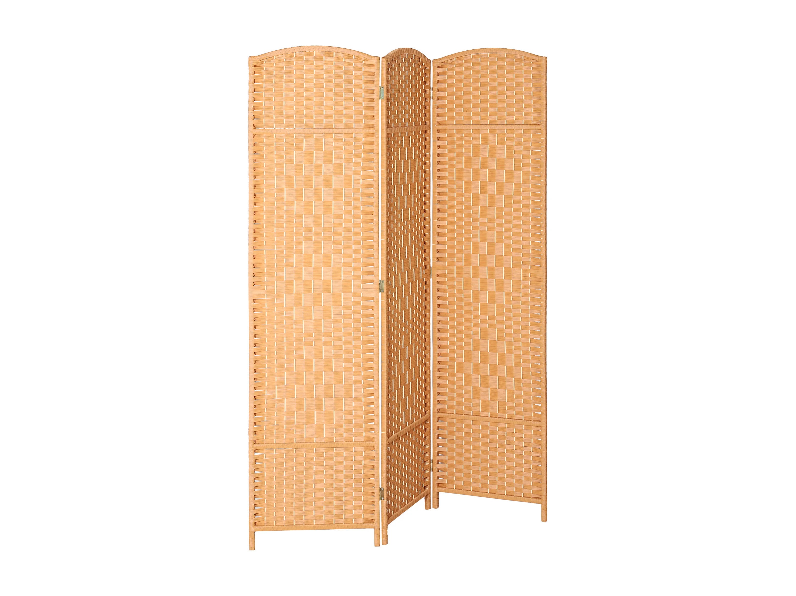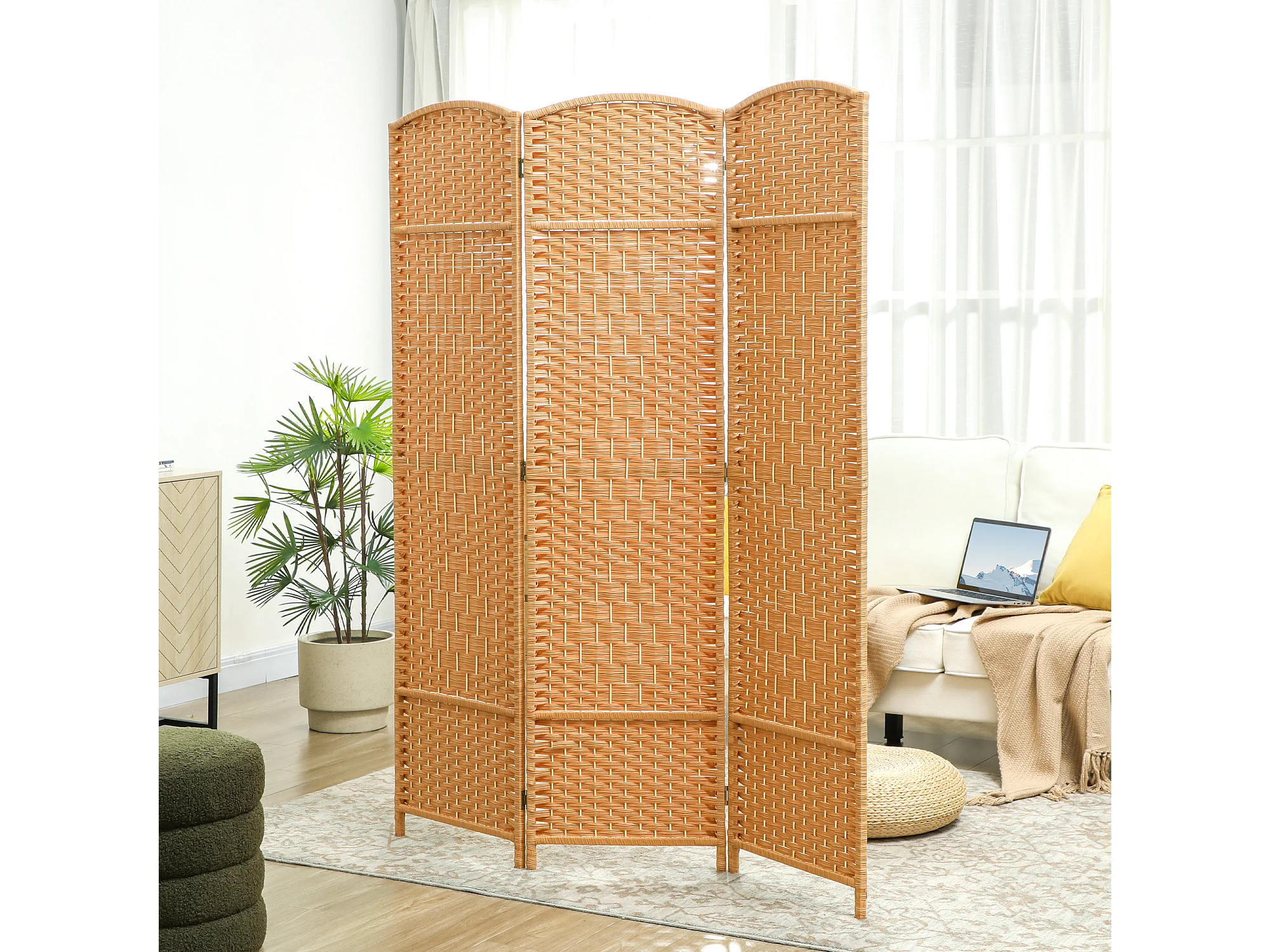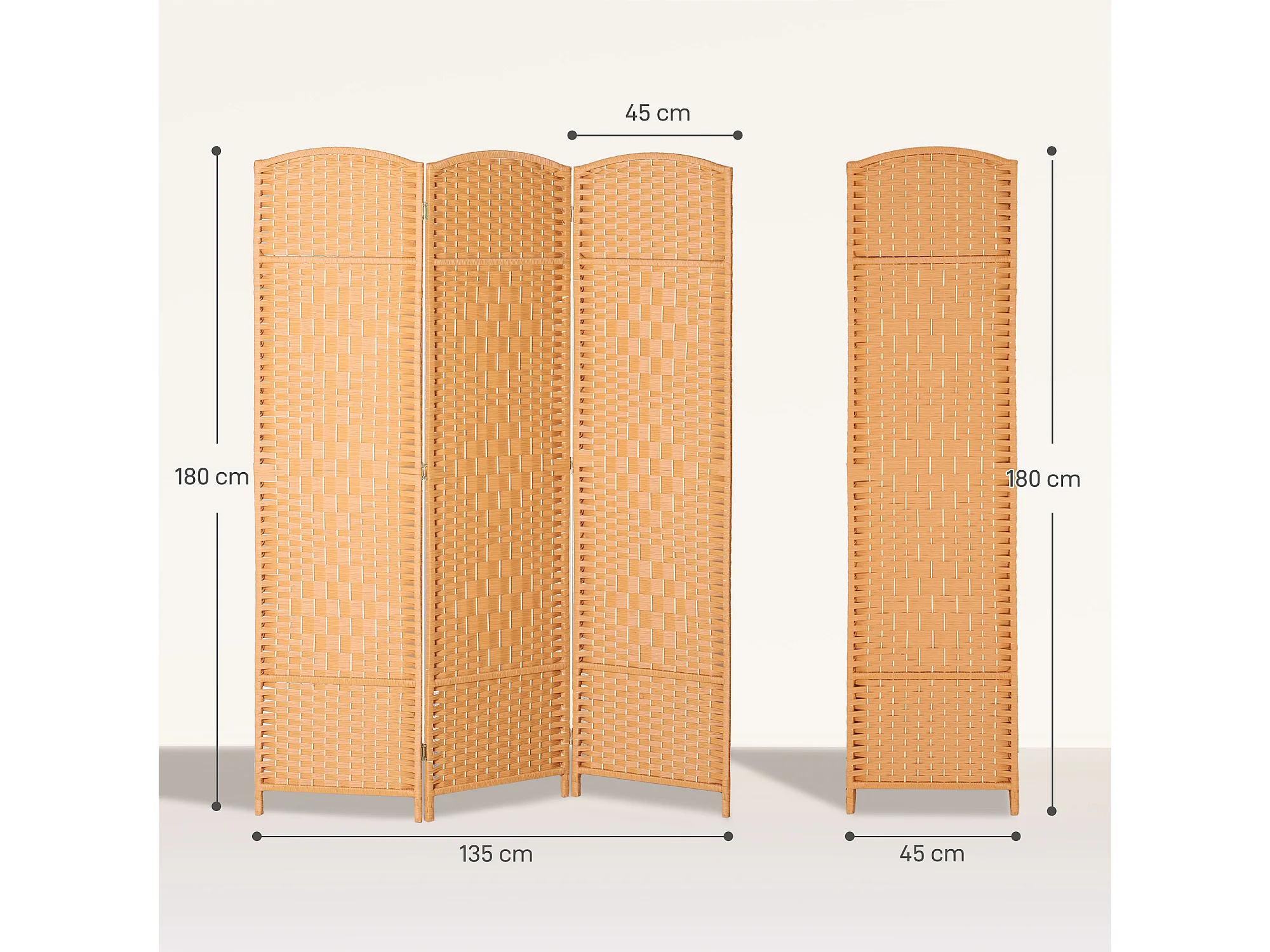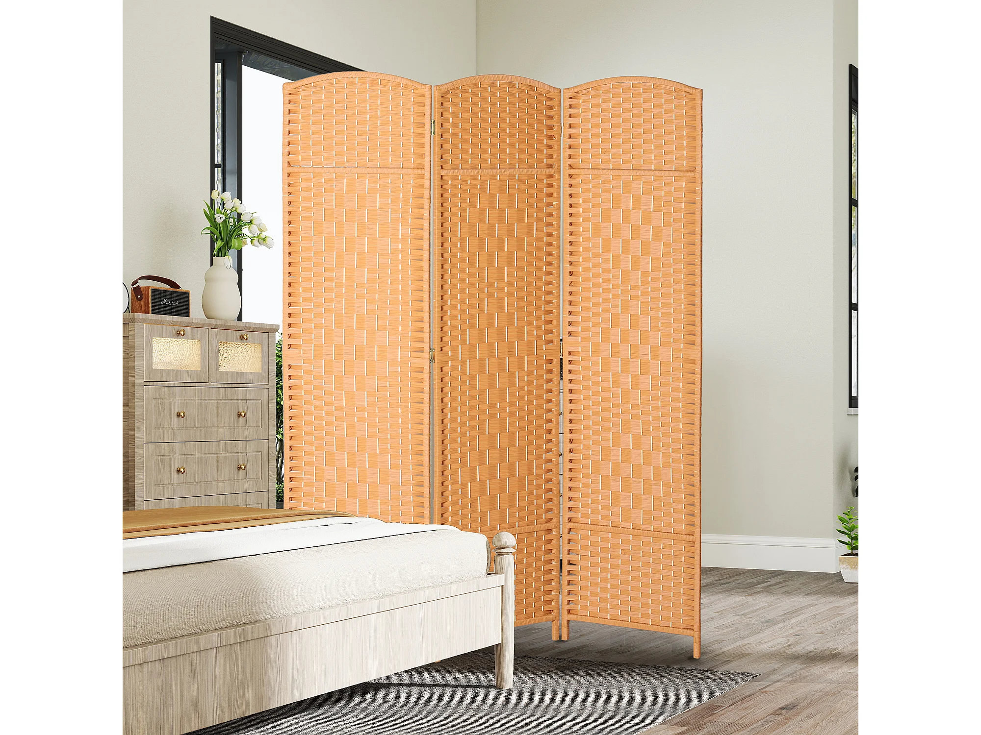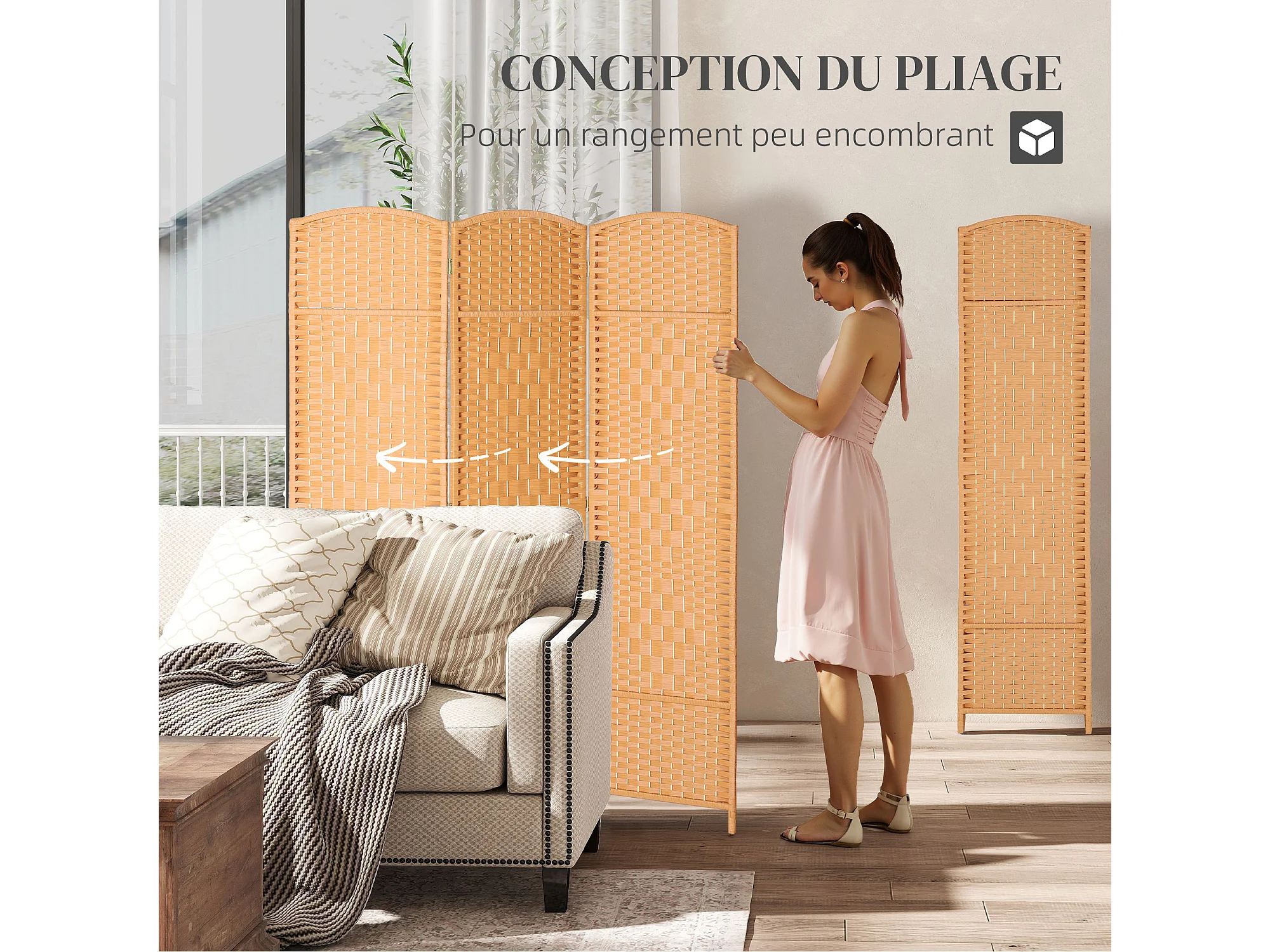 Paravent intérieur 3 panneaux pliables en bois séparateur de pièce style bohème tissé orangé