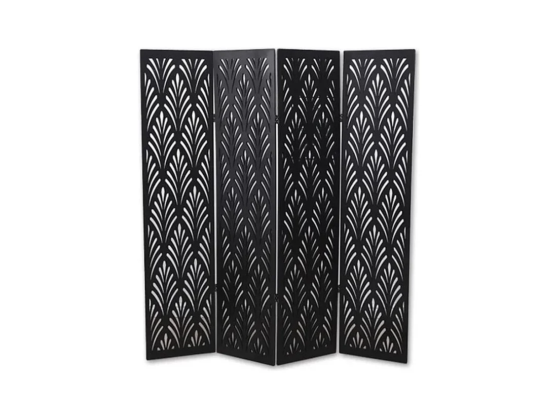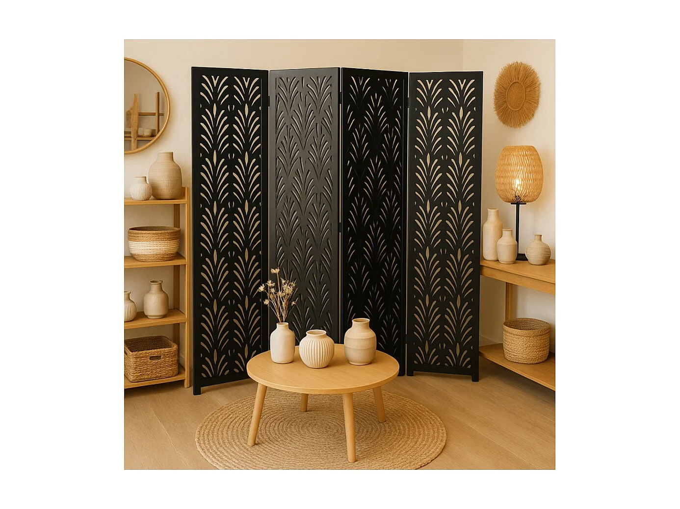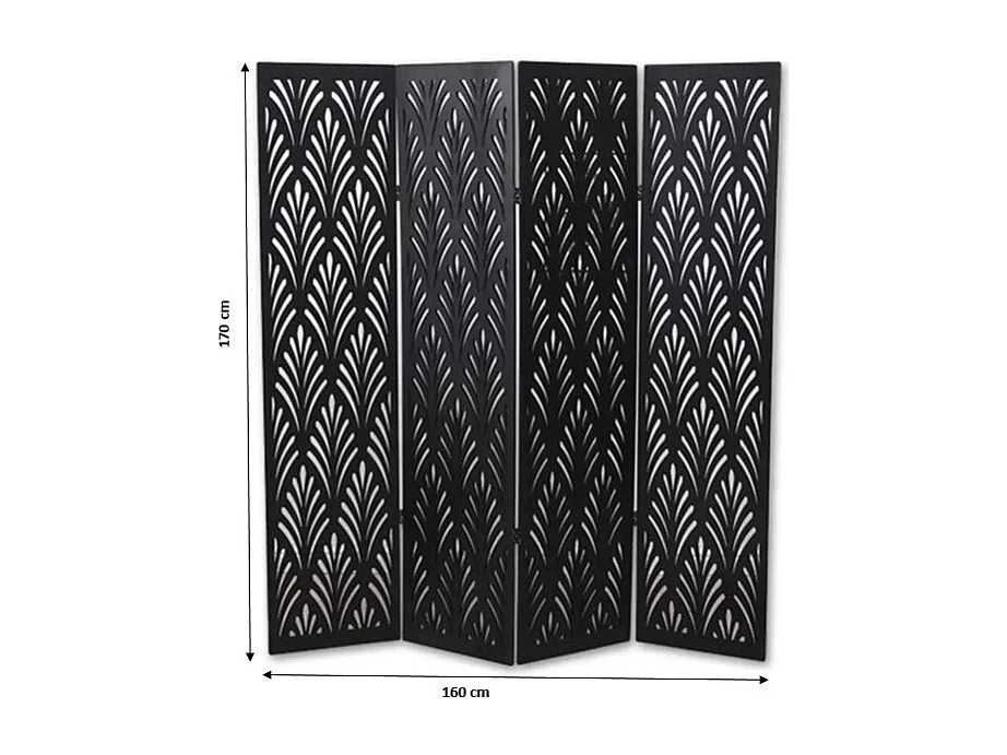 Paravent végétal en bois composite 4 pans, coloris noir H170 x L160cm