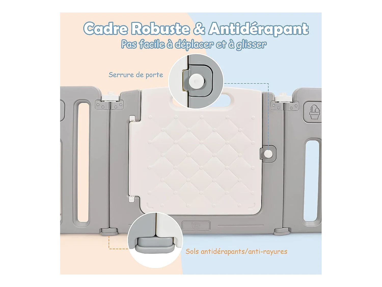Parc bébé plastique pliable 14+2 panneaux d'activité et de porte avec loquet de sécurité
