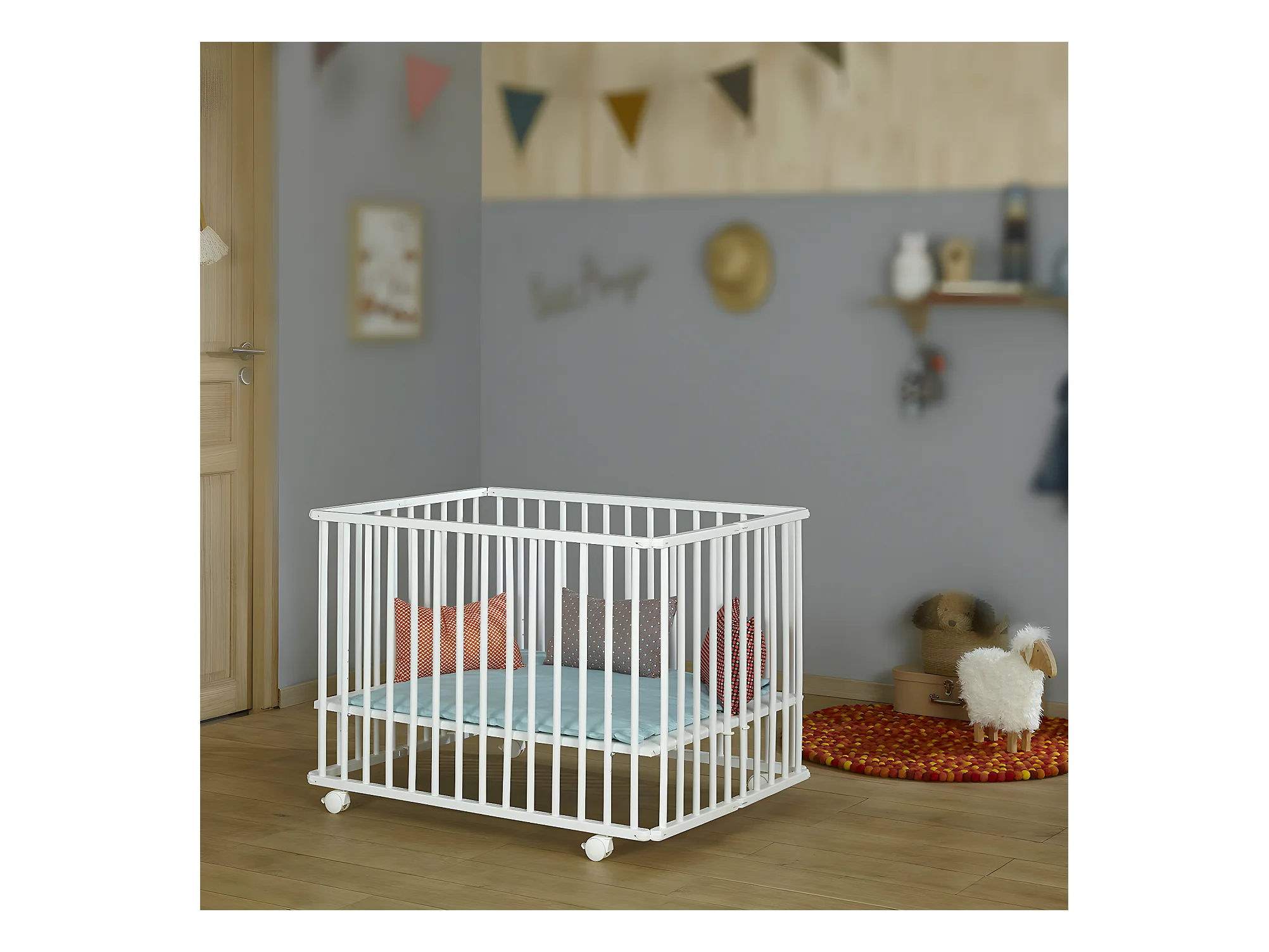 Parc bébé pliant carré 100x100 cm bois massif blanc HELIO