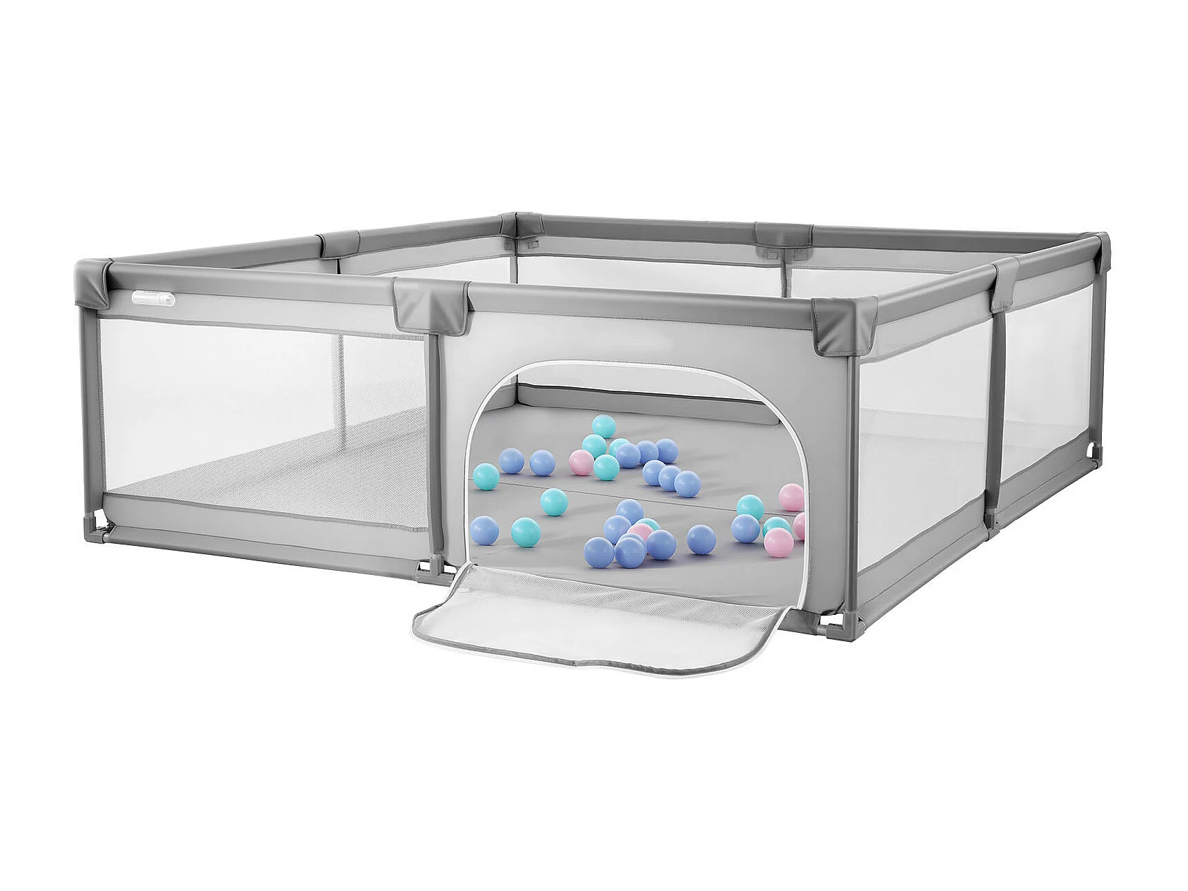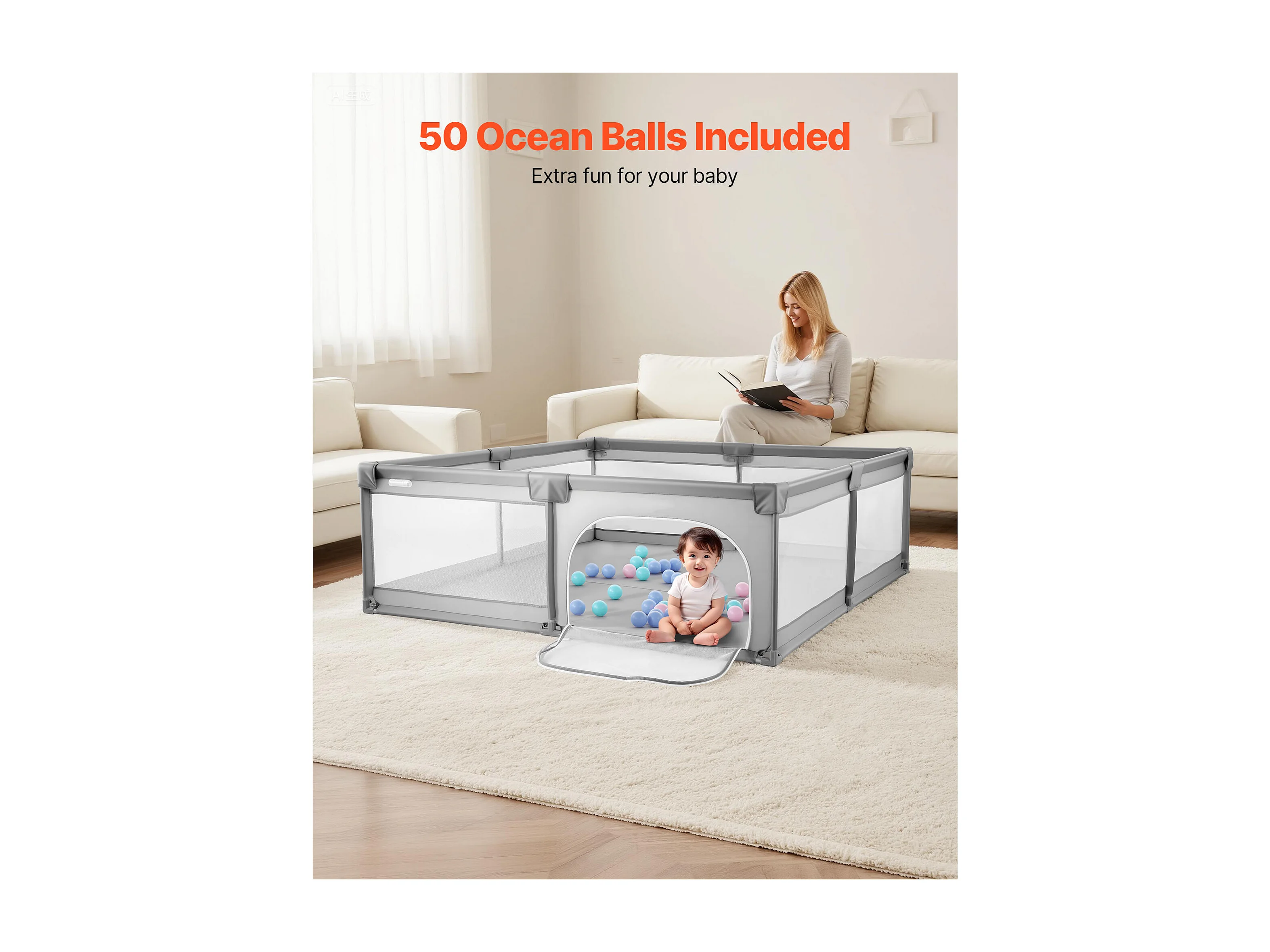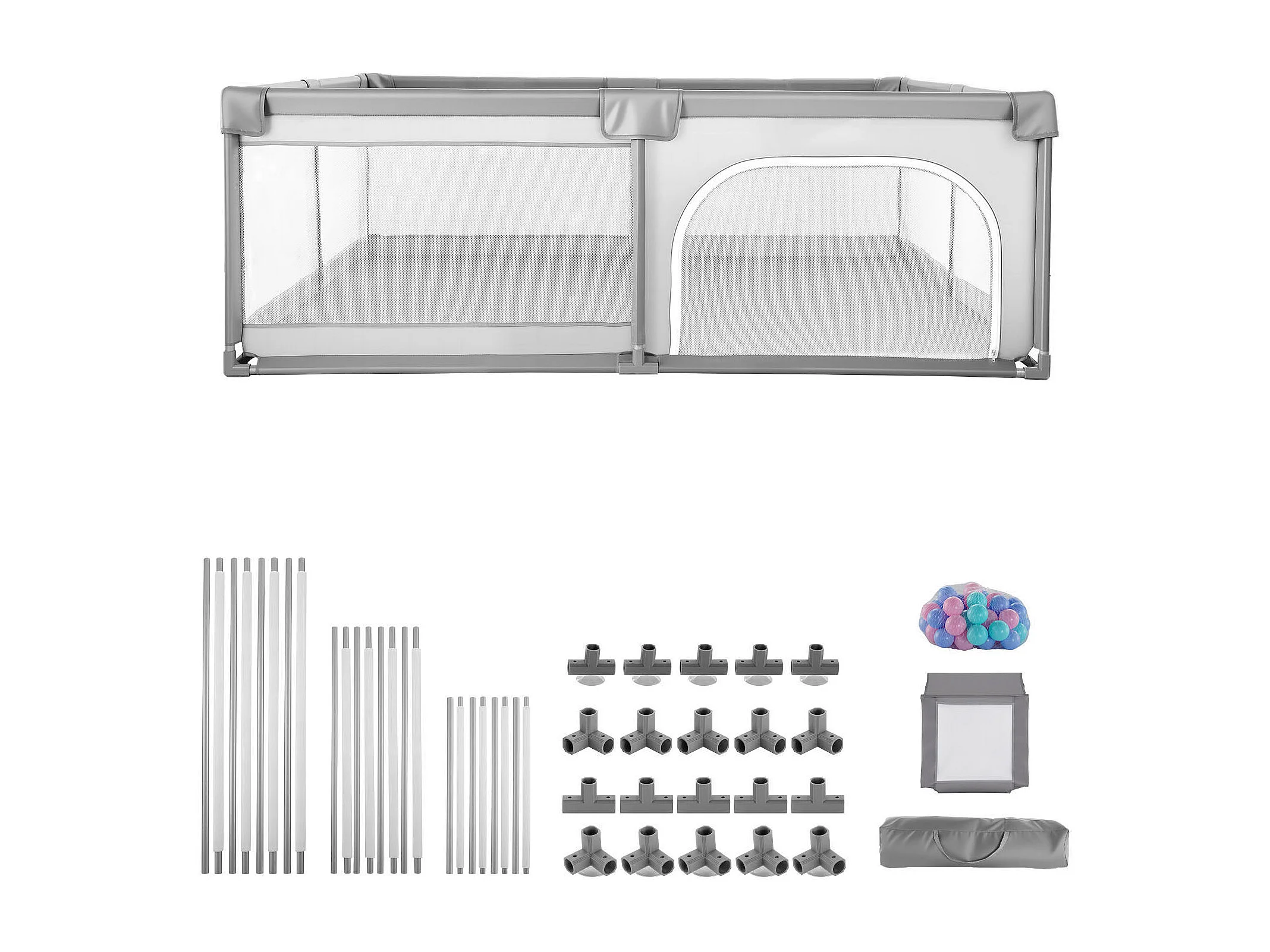 Parc Bébé SucceBuy, 200x149 cm, Parc de Jeu Enfant, avec 50 Balles Océaniques, Sac de Voyage, Porte Zippée, Maille Respirante, Barrière de Jeu