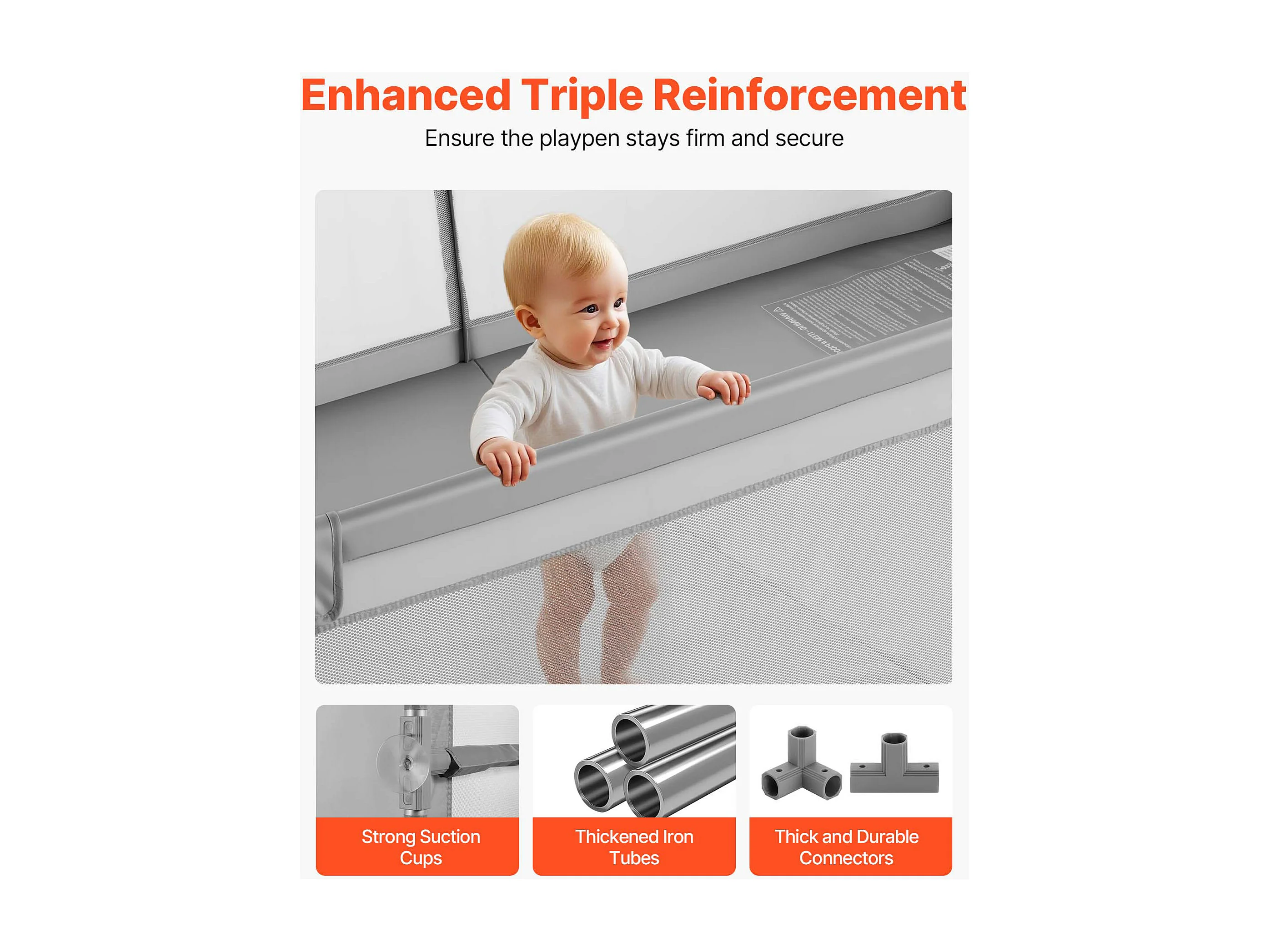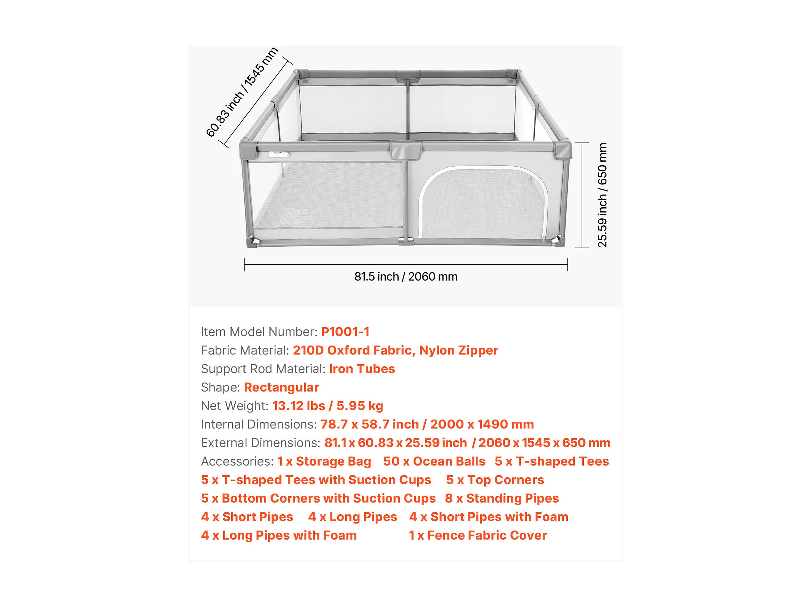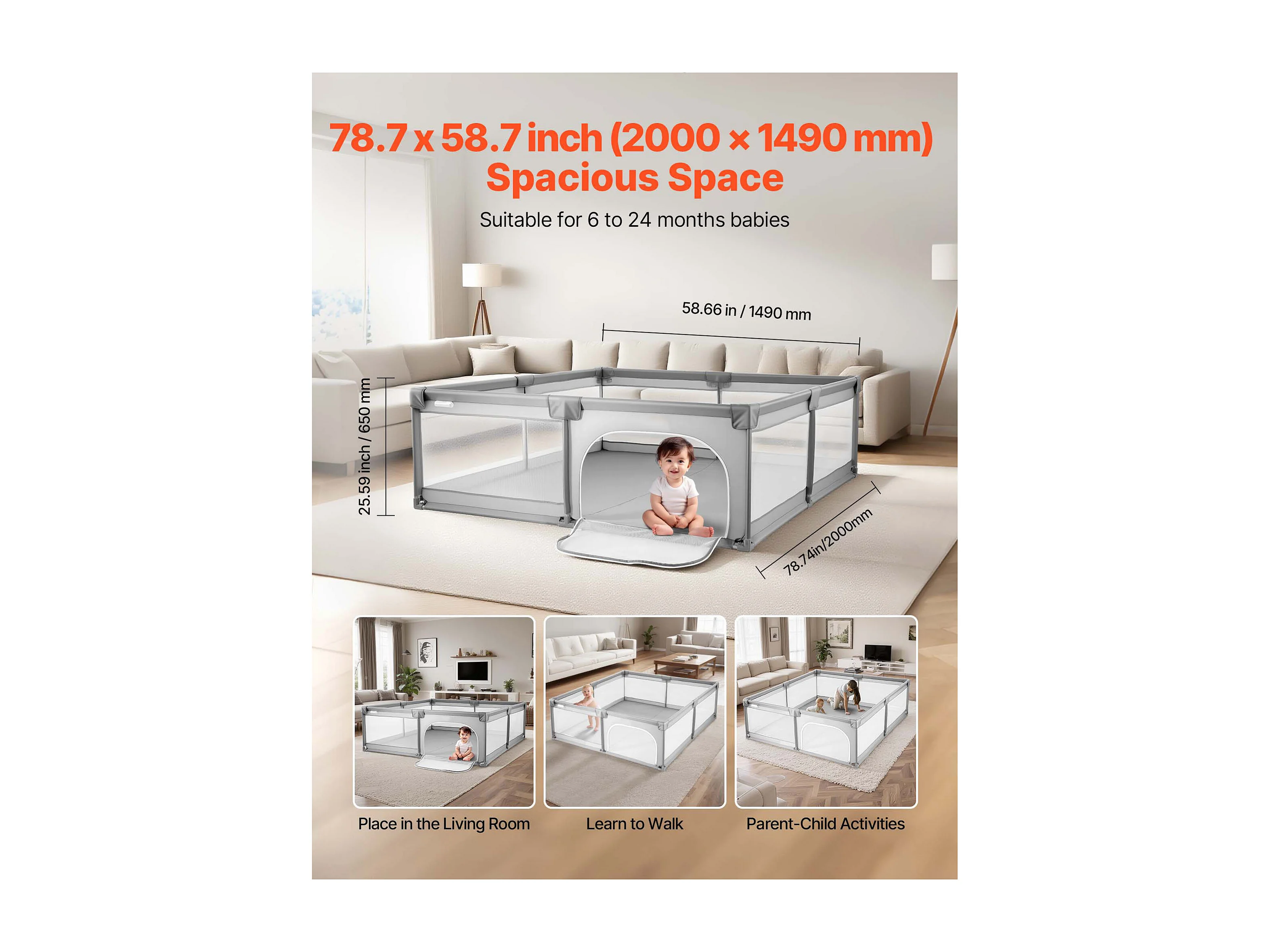 Parc Bébé SucceBuy, 200x149 cm, Parc de Jeu Enfant, avec 50 Balles Océaniques, Sac de Voyage, Porte Zippée, Maille Respirante, Barrière de Jeu