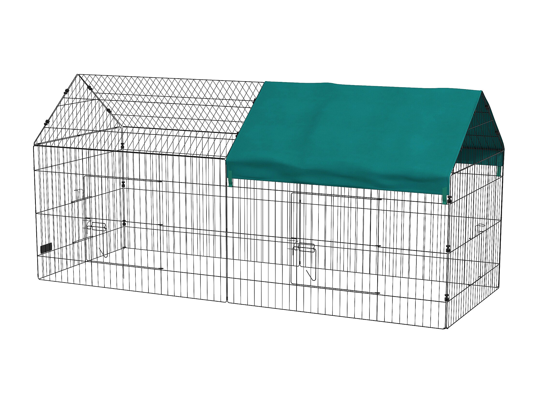 Parc enclos petits animaux - 2 portes, 2 trappes nourrissages, zone couverte - acier noir polyester vert