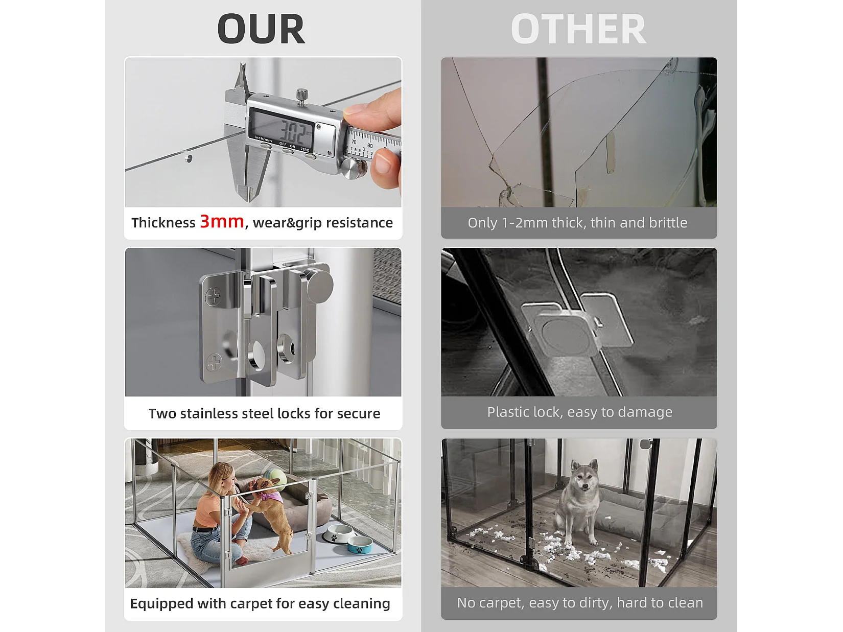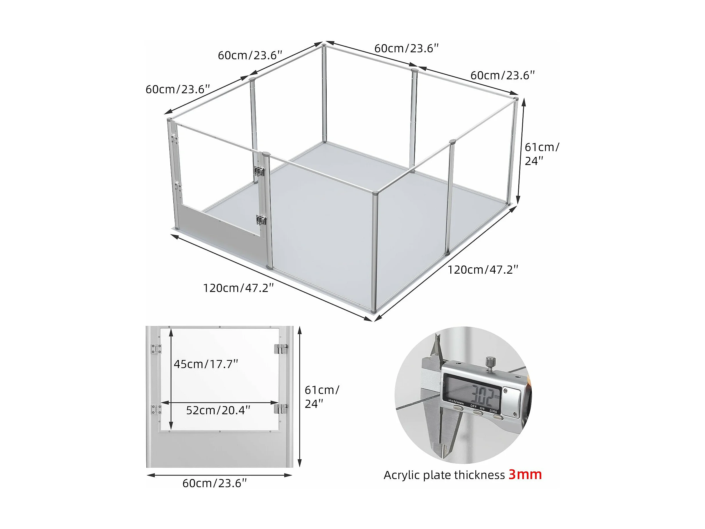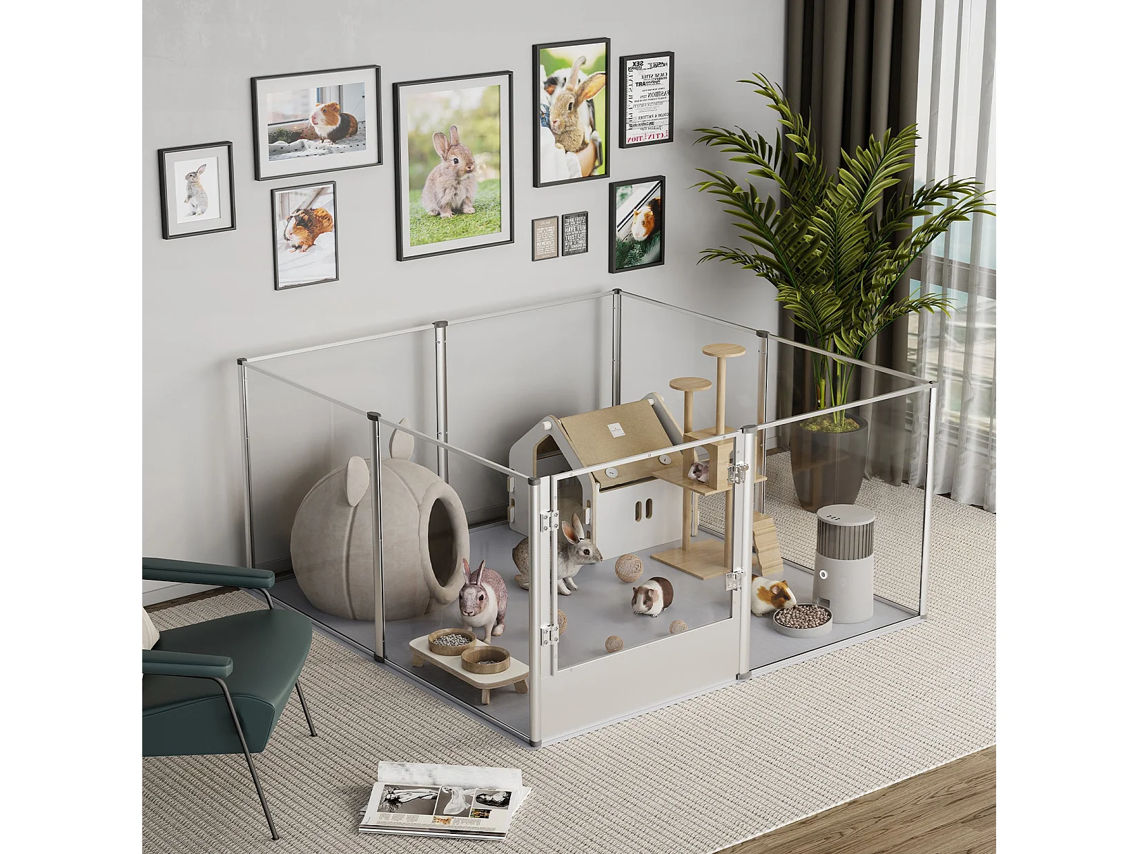 Parc grand chien intérieur enclos chien acrylique grande taille en métal caisse de mise bas pour chiens chat lapin 120x120x61cm