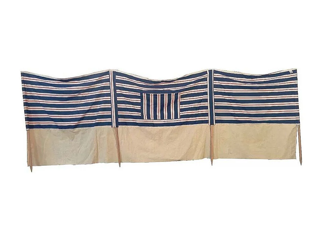Pare-vent plage 2.7m tissu 100% coton Evora Bleu - écru et rouge
