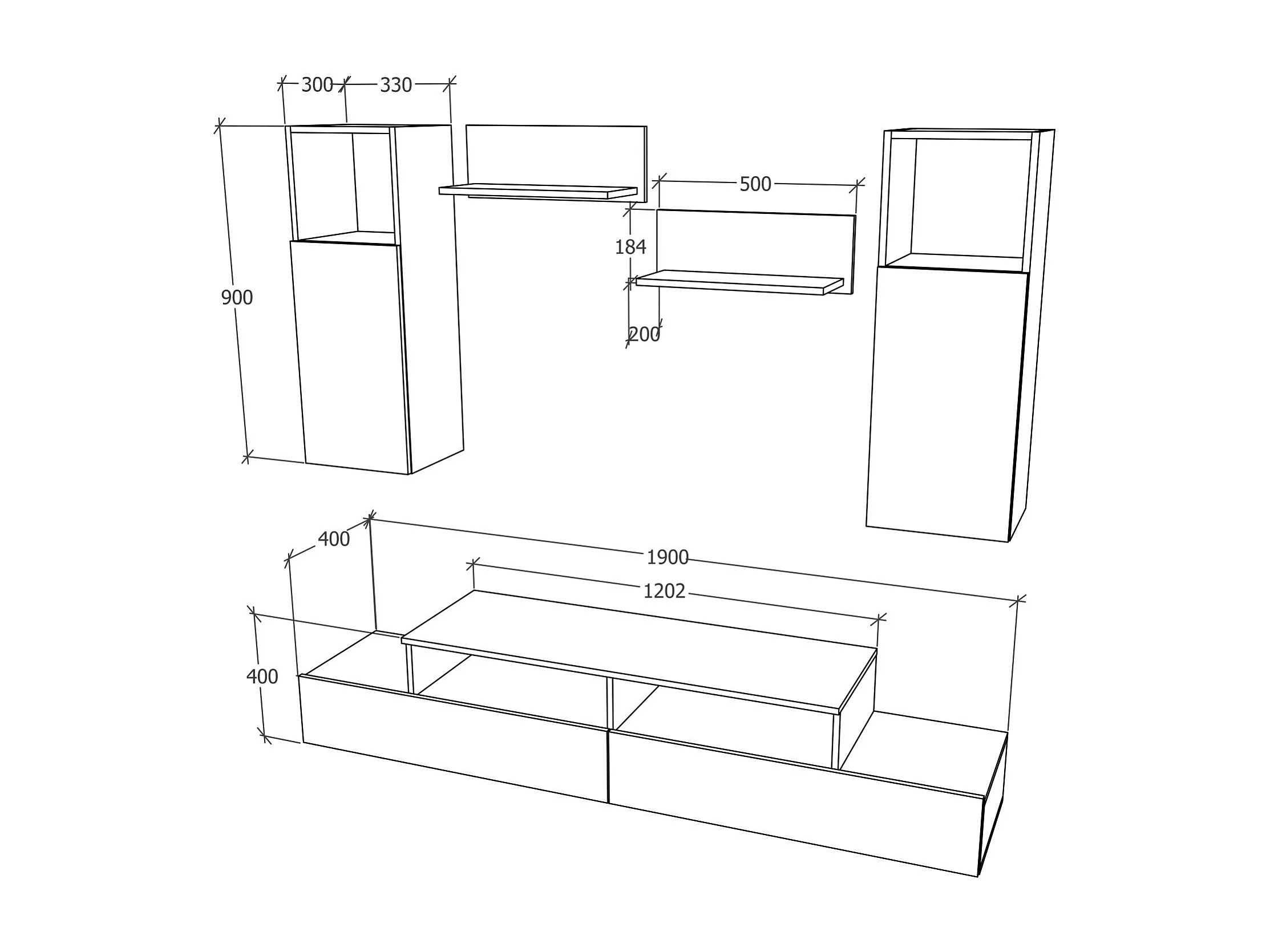 Parete attrezzata haaus Osaka, Mobile da soggiorno, Pin ancien, L 190 cm