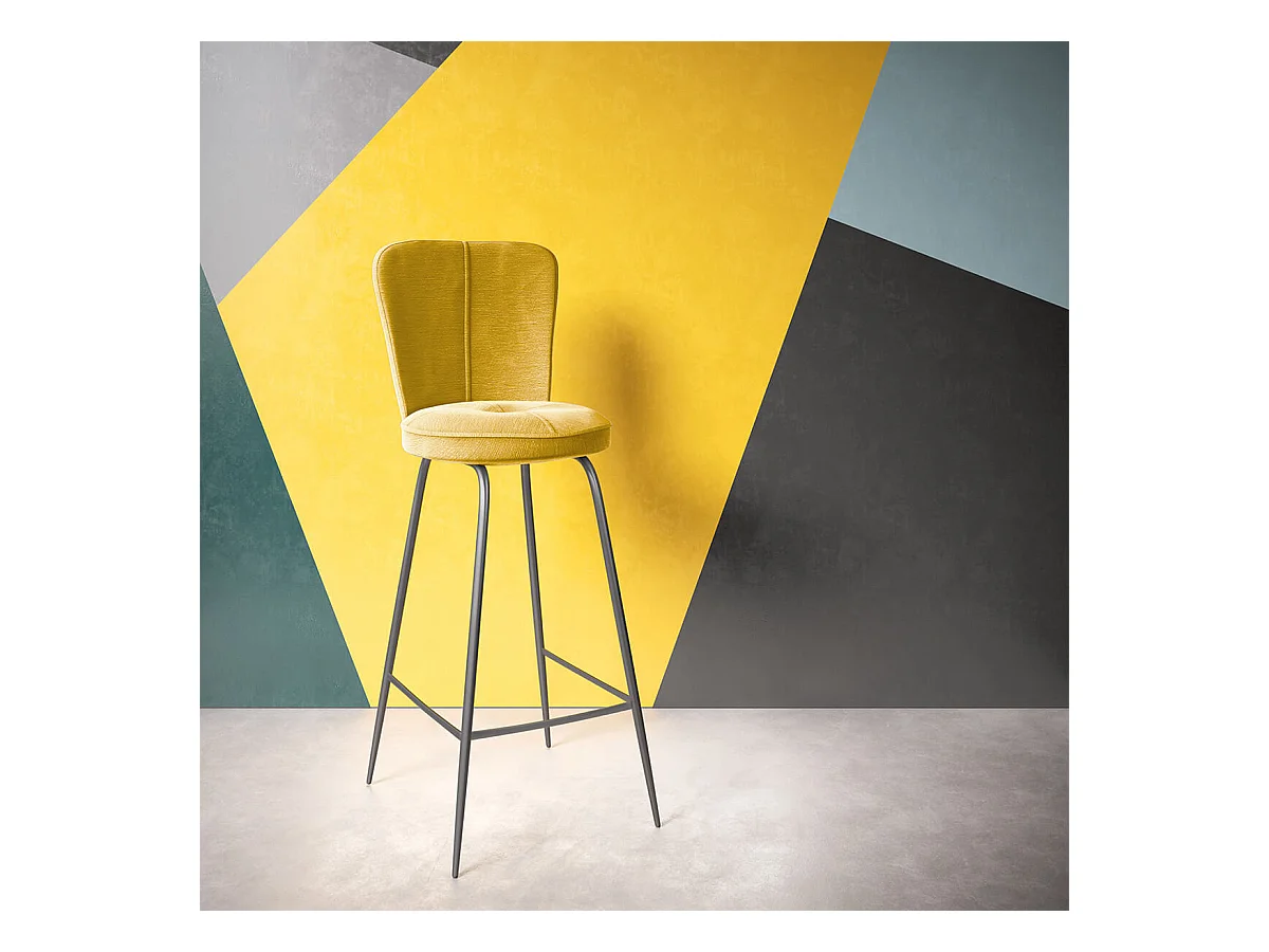 PARIL - Lot de 2 Tabourets de Bar Matelassés Jaunes