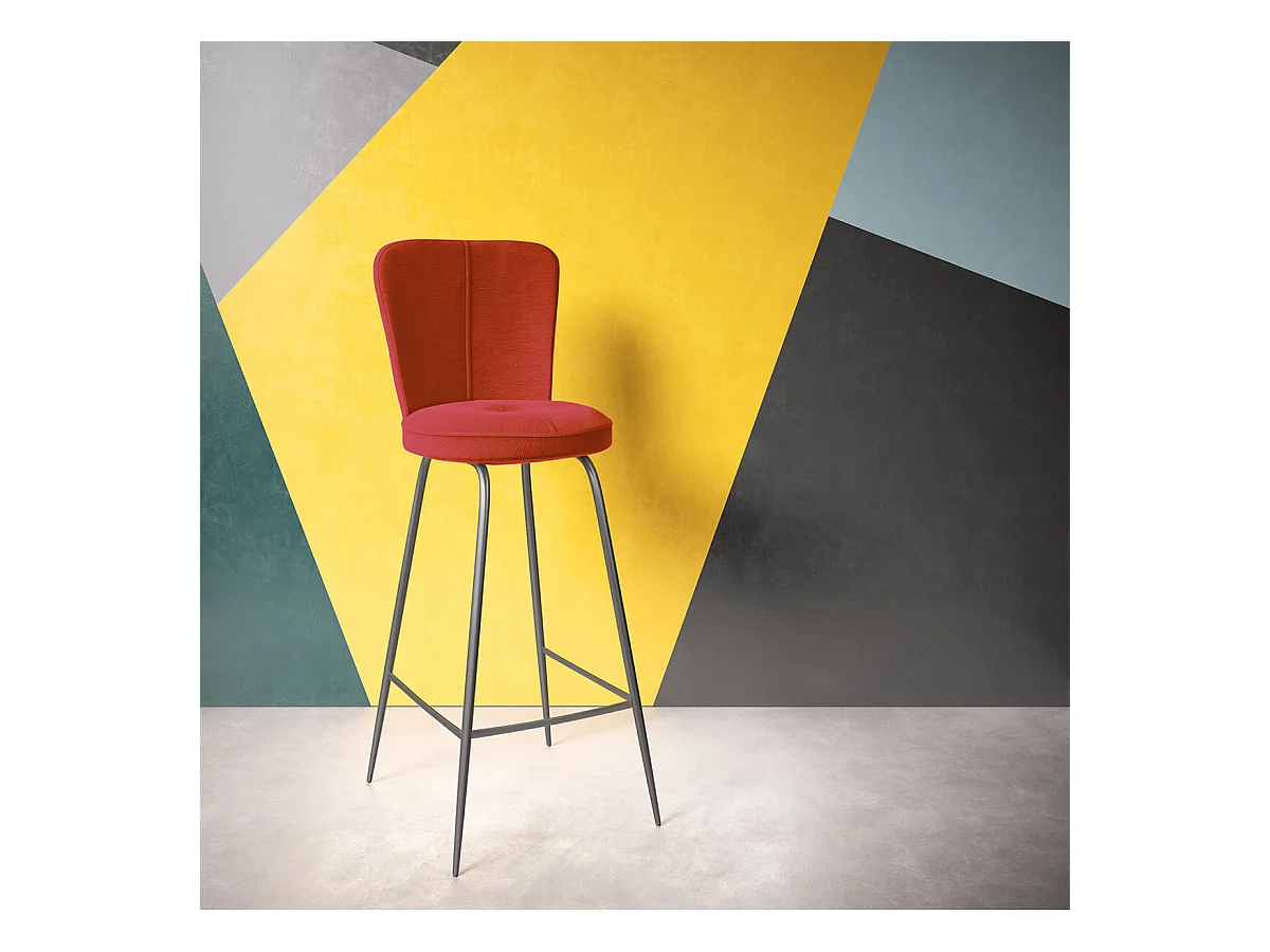 PARIL - Lot de 2 Tabourets de Bar Matelassés Rouges