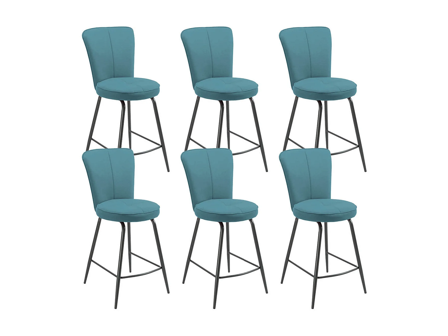 PARIL - Lot de 6 Tabourets de Bar Matelassés Bleus