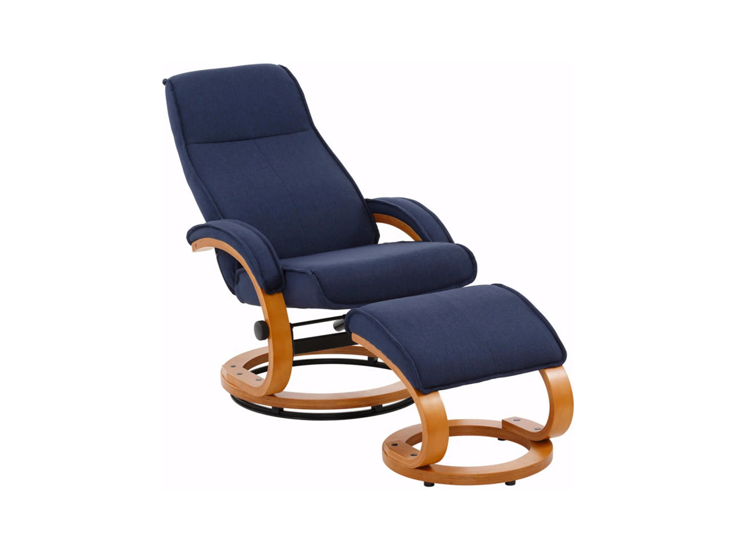 Paris|Fauteuil de relaxation + tabouret en tissu bleu foncé