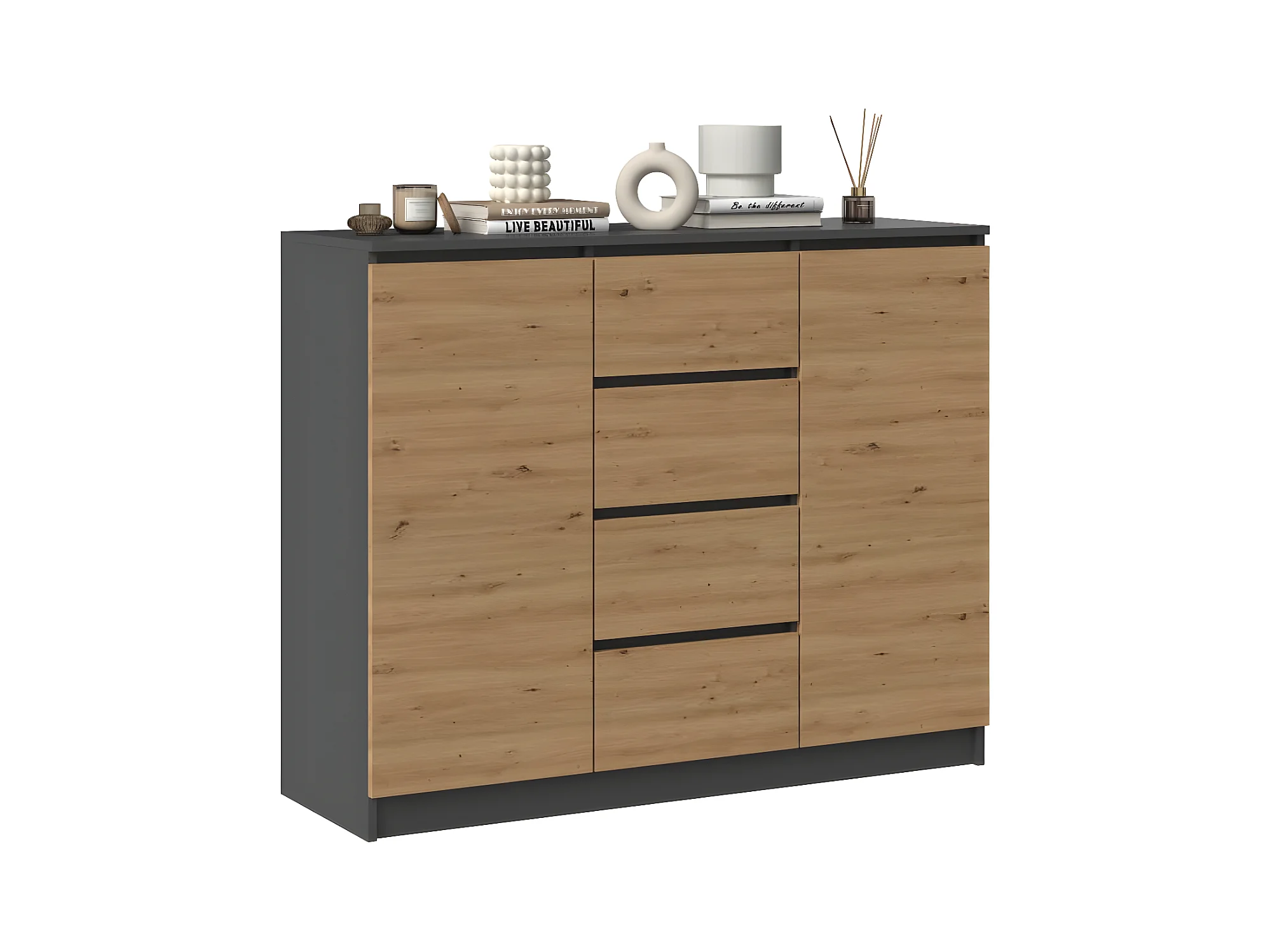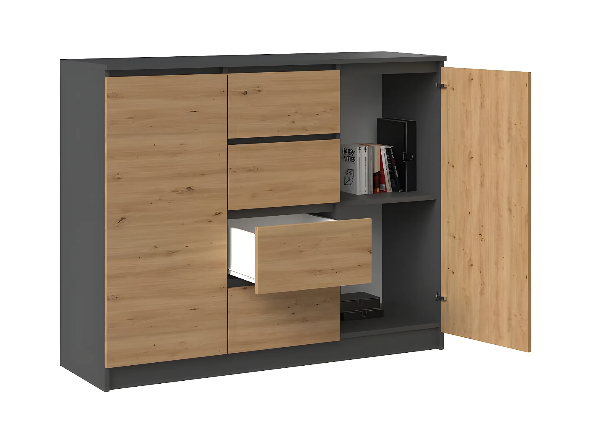 PARME 120 - Commode 2 portes + 4 tiroirs style moderne - Dimensions 97x120x40 cm - Meuble de rangement