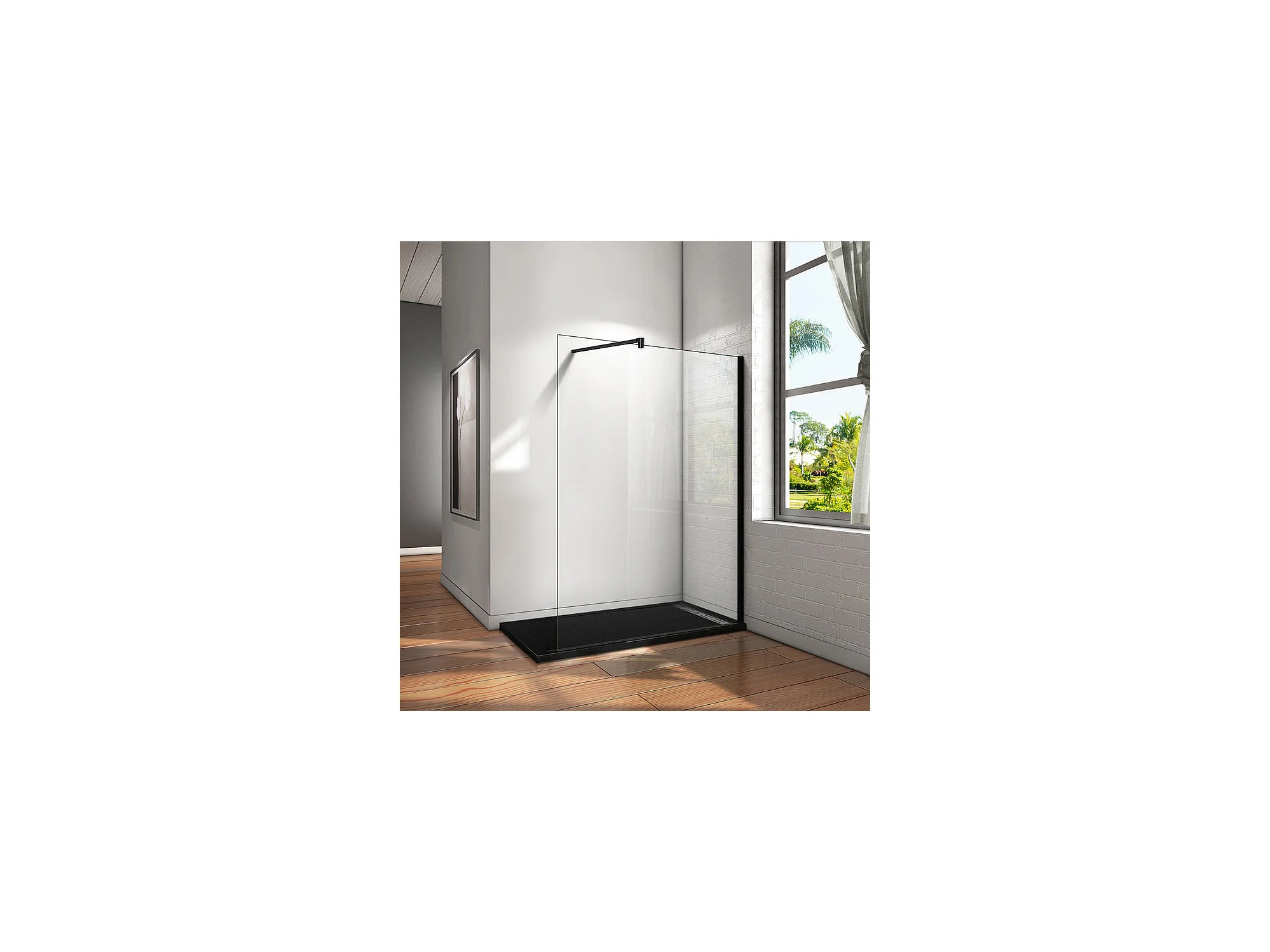 Paroi de douche à l'italienne 120x200cm en verre 8mm securit anticalcaire, avec barre de fixation 140cm en carré - Noir Mat