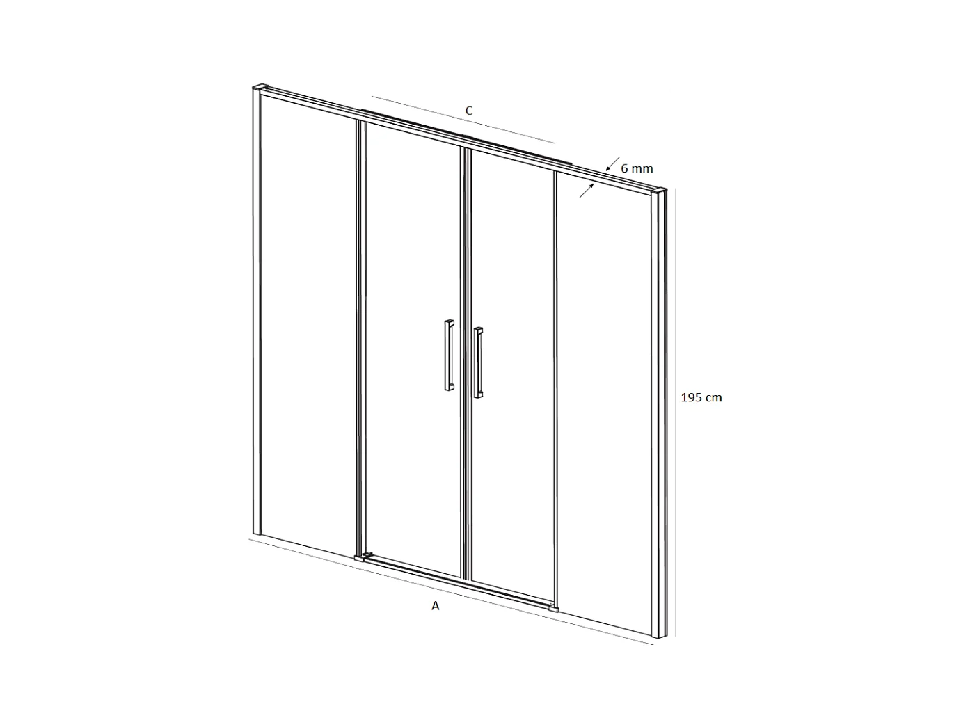 Paroi de douche 2 verres fixes + 2 portes coulissantes DELTA blanc mat 155-157.6 cm