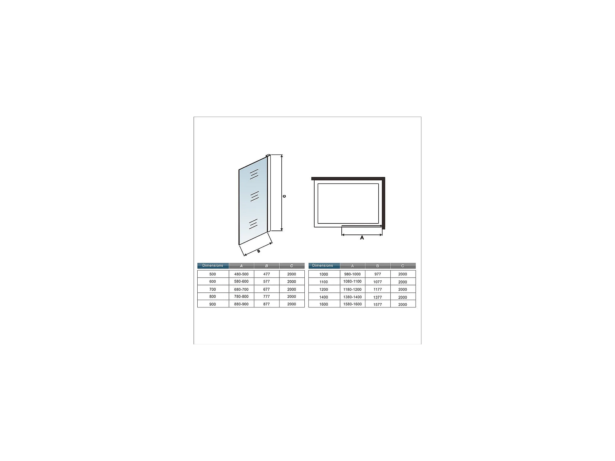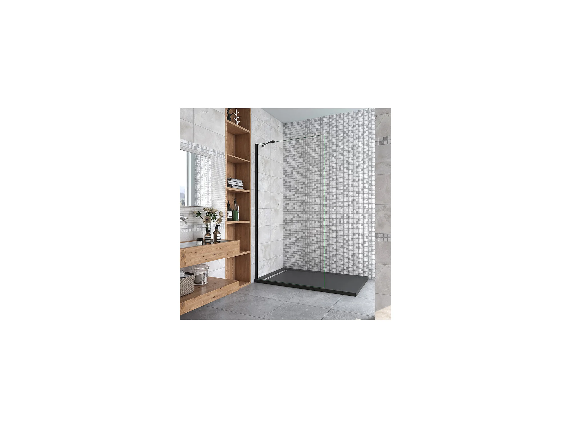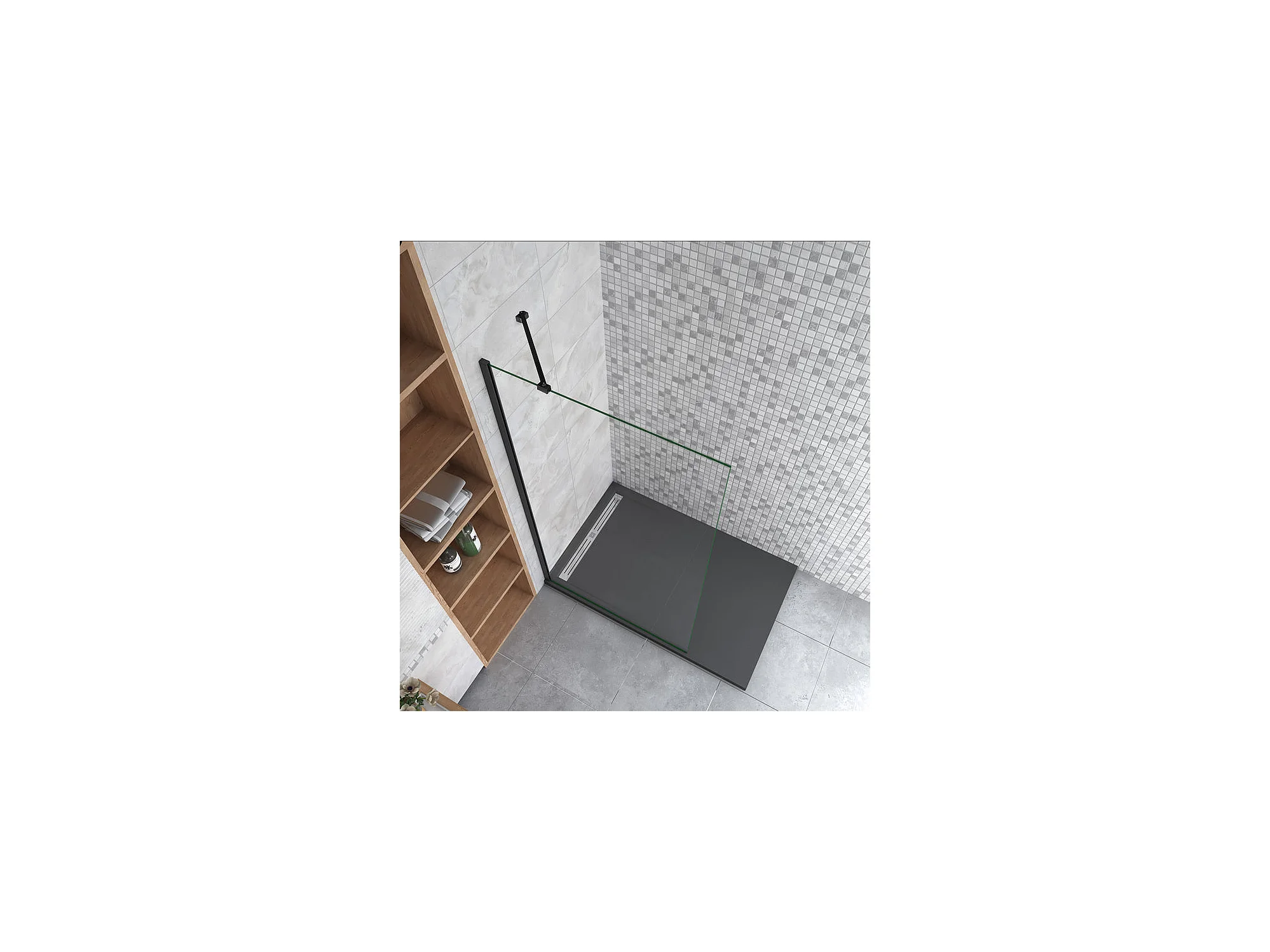 Paroi de douche à l'italienne 80x200cm en verre 8mm securit anticalcaire, avec barre de fixation d'angle 45cm - Noir Mat
