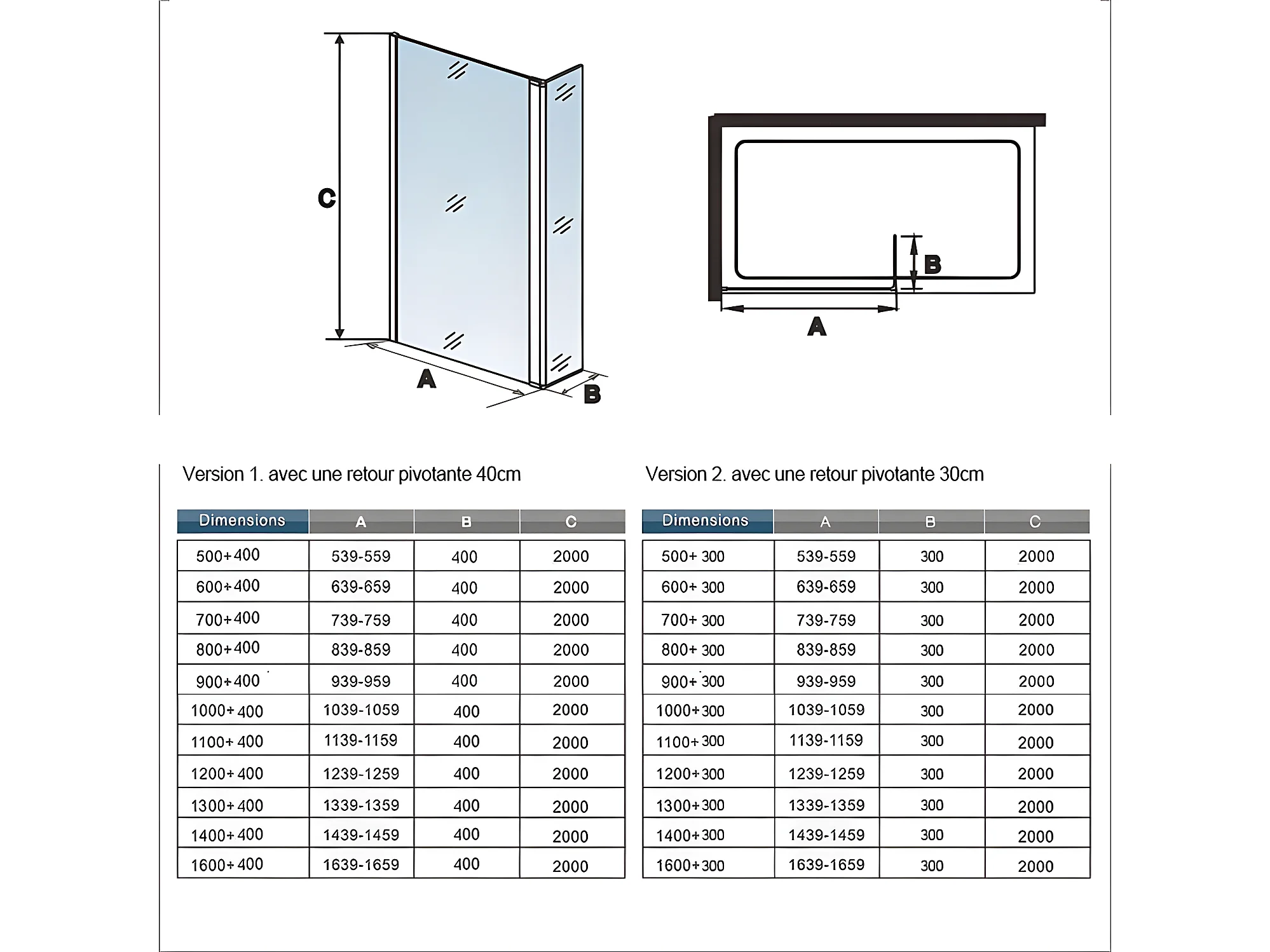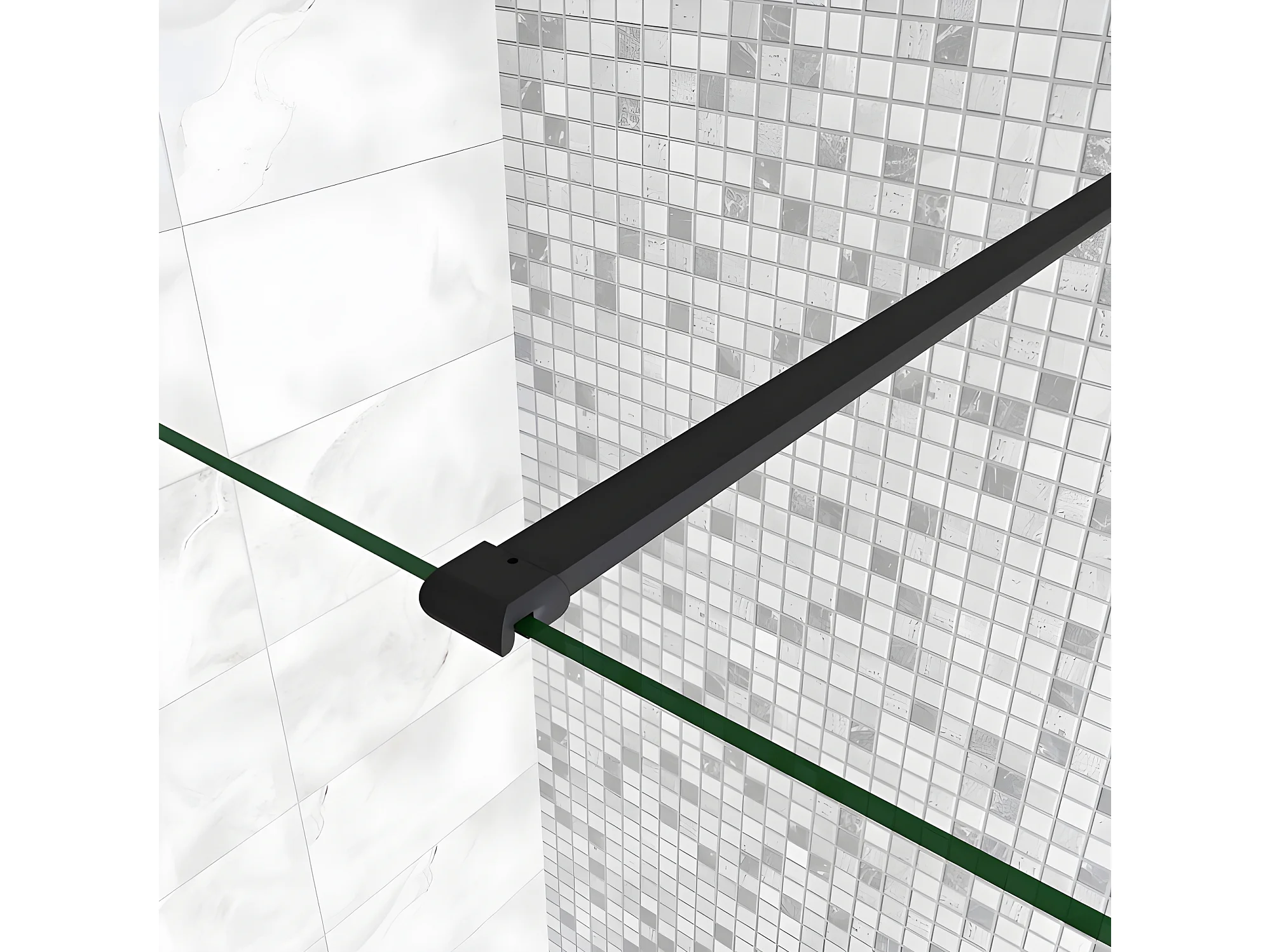 Paroi de douche à l'italienne avec retour pivotant 90+30x200cm avec barre de fixation 140cm recoupable - Noir Mat - 8mm verre anticalcaire