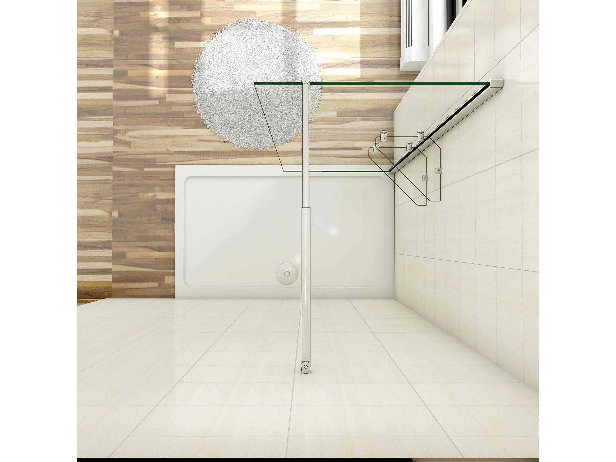Paroi de douche à l'italienne 90x190cm avec étagères et barre de fixation 70-120cm en cylindrique, en 8mm verre anticalcaire